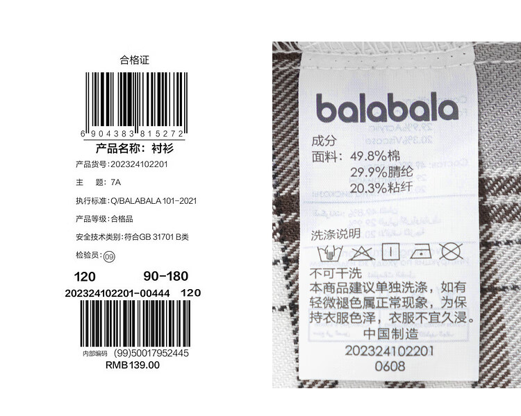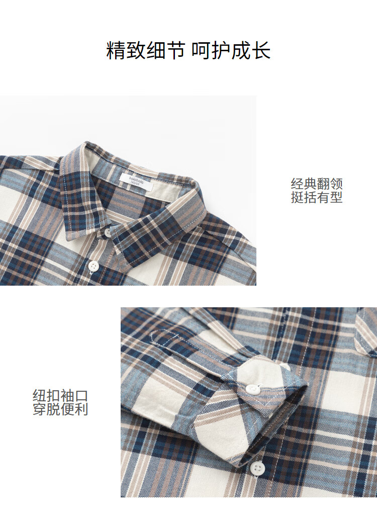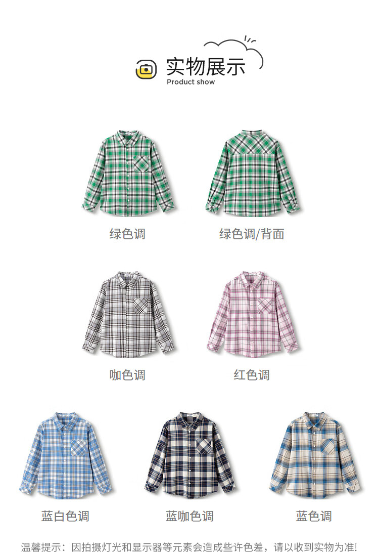 Balabala Official Authentic Children's Shirt Boys' Shirt Long Sleeve 2025 Spring and Autumn Clothing Girls Plaid Green Tone 00444 90 cm