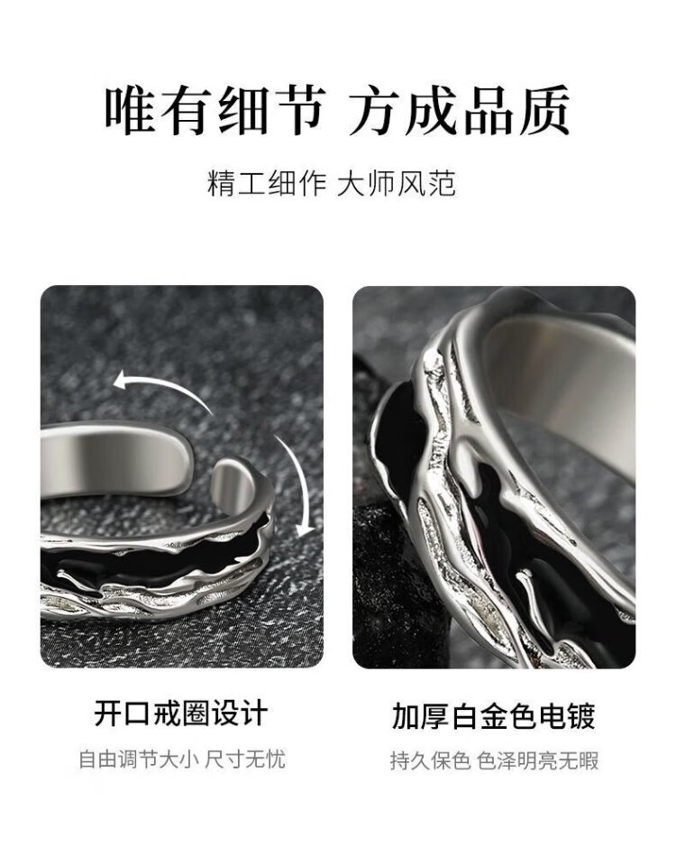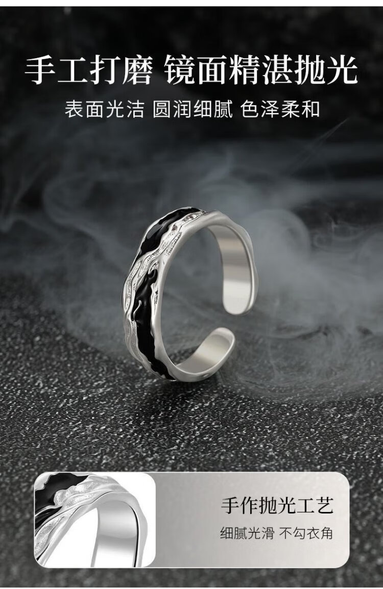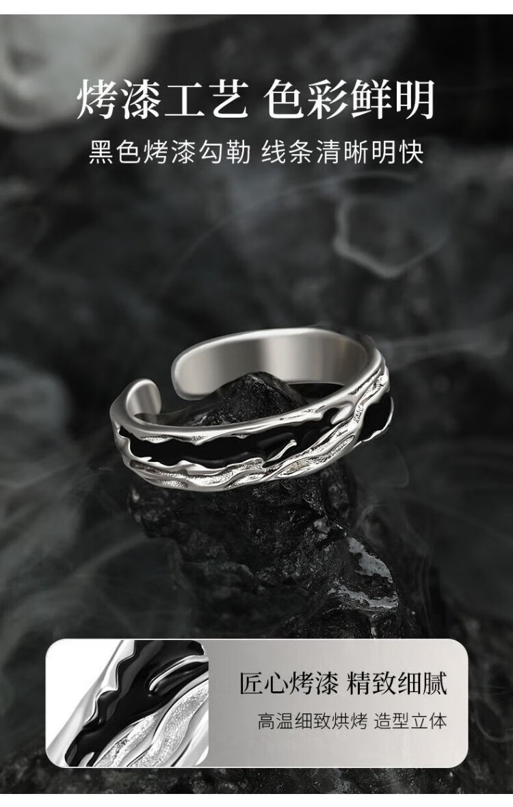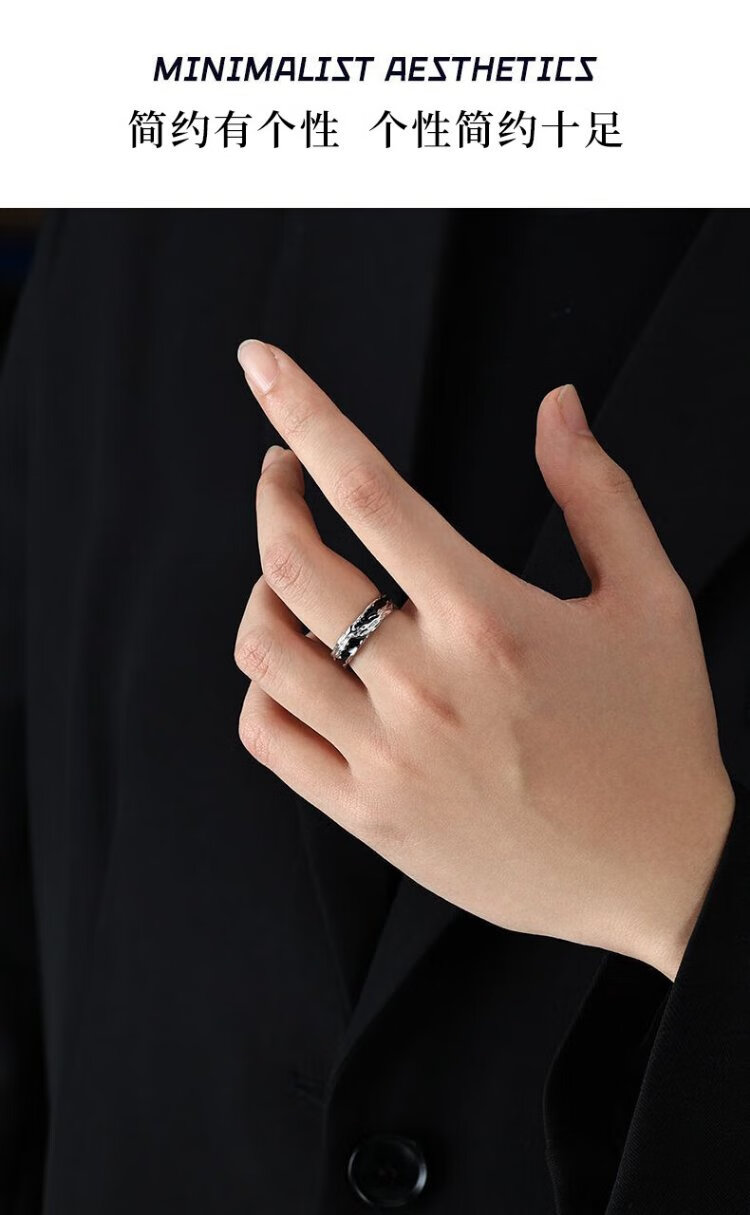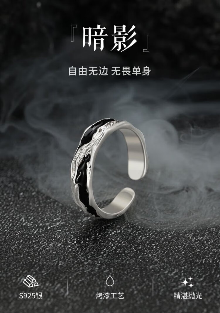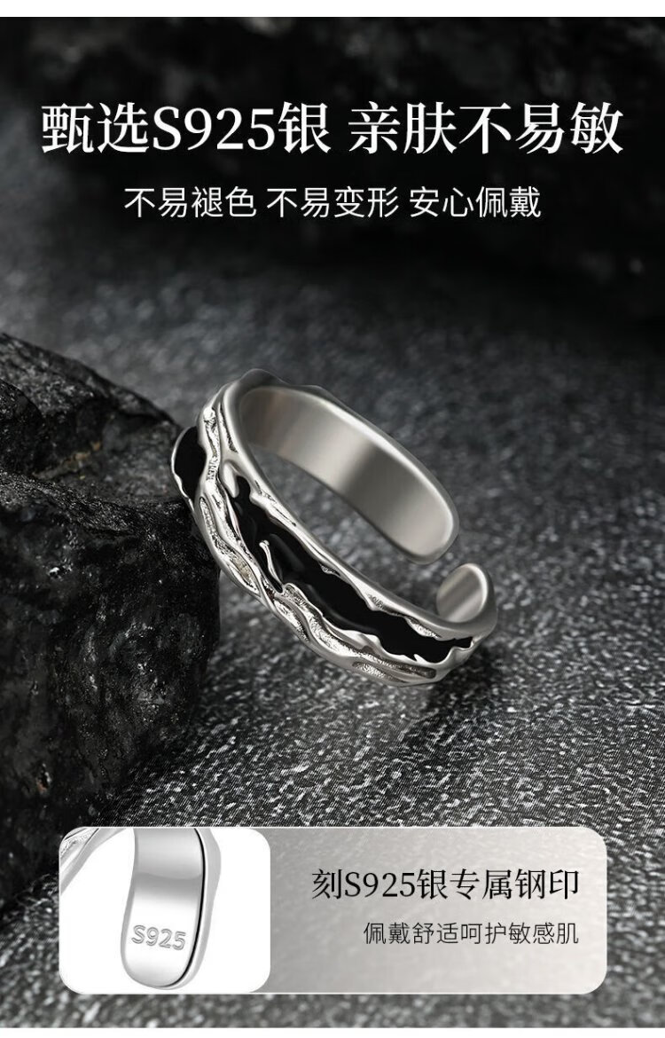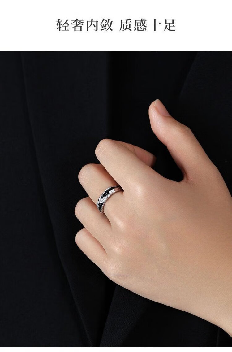 Zhen Shang Silver China Gold Authorized Sterling Silver Ring Men's Single Ring Silver 925 Ring Chinese Valentine's Day Gift for Boyfriend Shadow Single Ring + Chinese Gold Gift Box