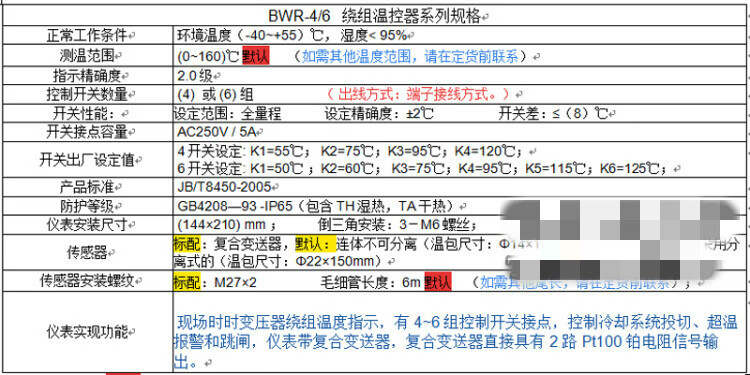 Reed transformer winding thermometer BWR-4/BWR-4D winding thermostat BWR-4