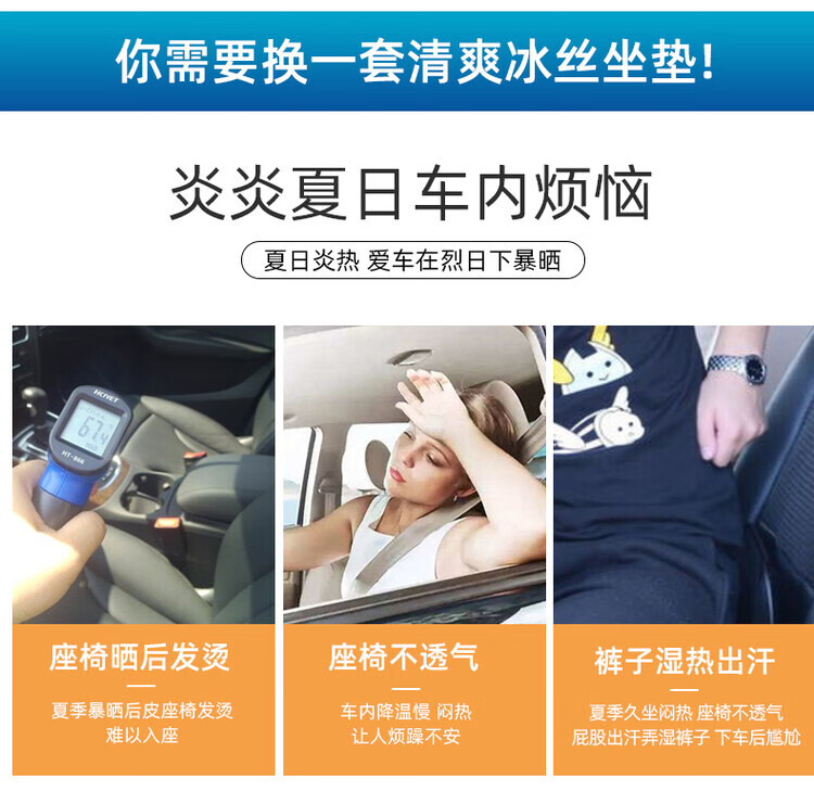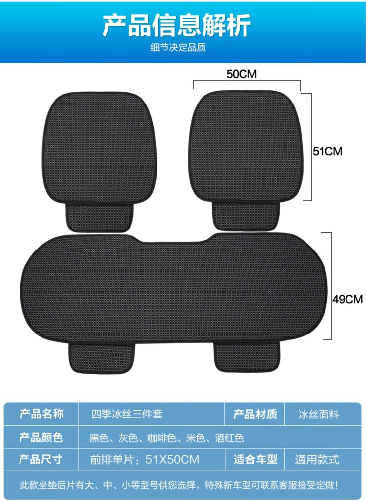 DINGTIANLIYING car seat cushion summer ice silk cooling cushion single piece universal single rear ventilated and breathable cooling mat four-season car seat cushion classic temperament gray-front seat 2 photos
