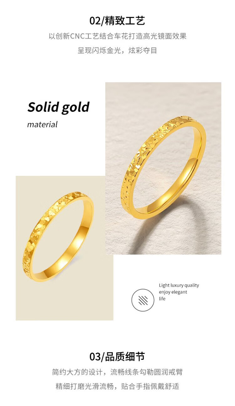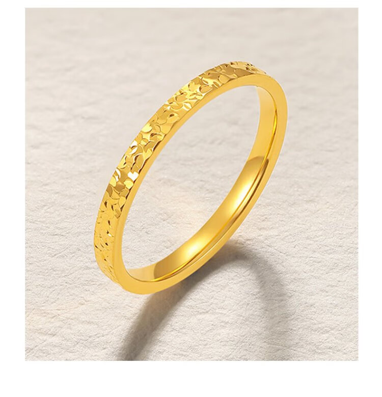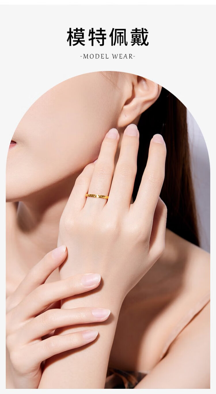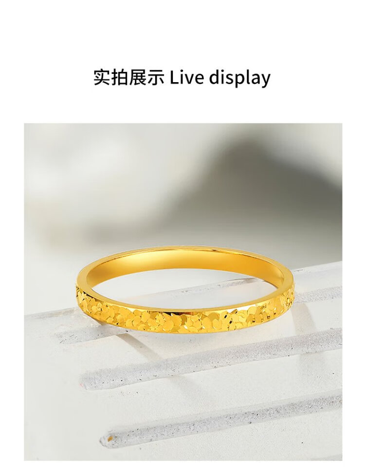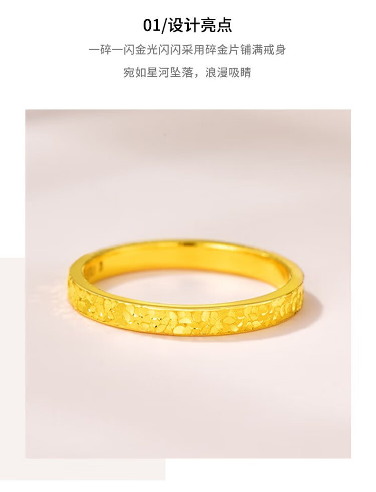 Lao Fengxiang Broken Ice Gold Ring Couple Pure Gold Closed Gypsophila Ring for Girlfriend and Wife Anniversary Birthday Gift Broken Gold Ring #13 (about 1g)