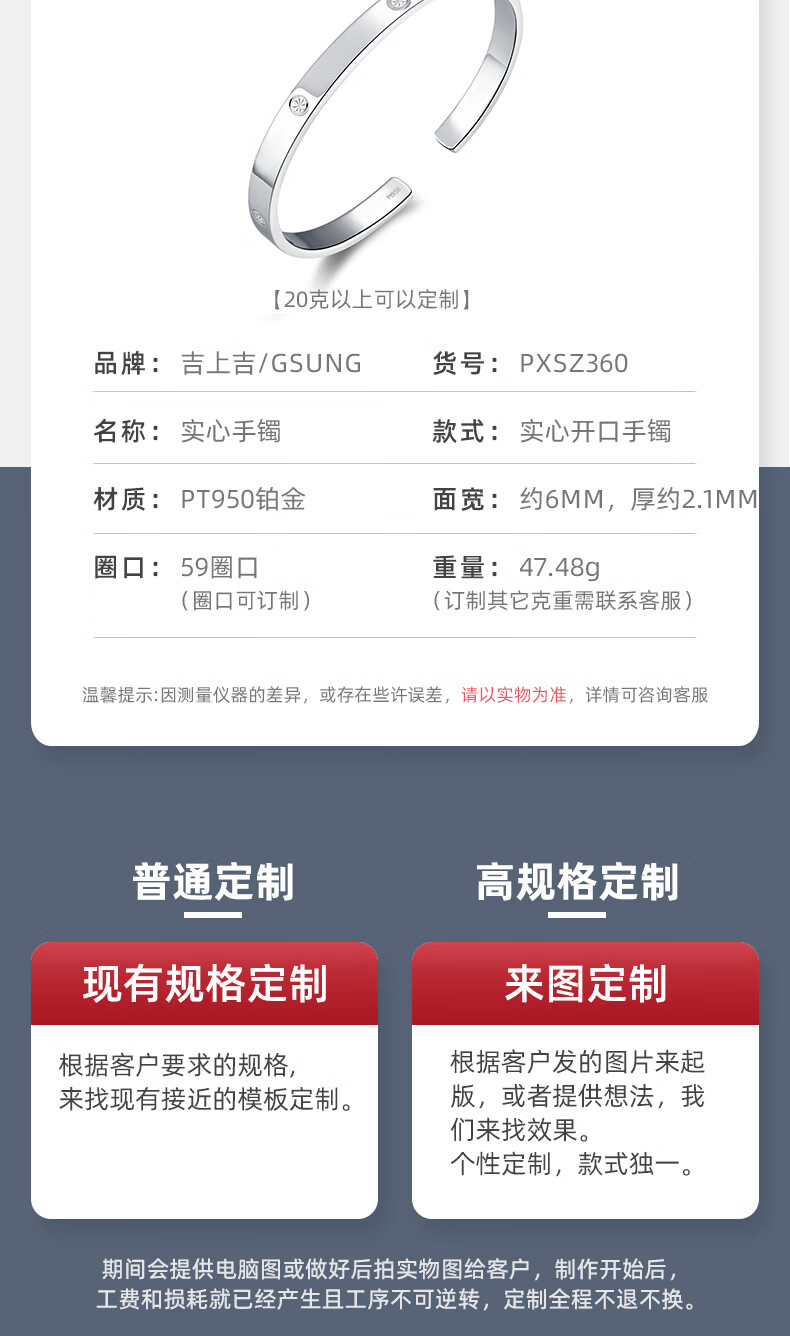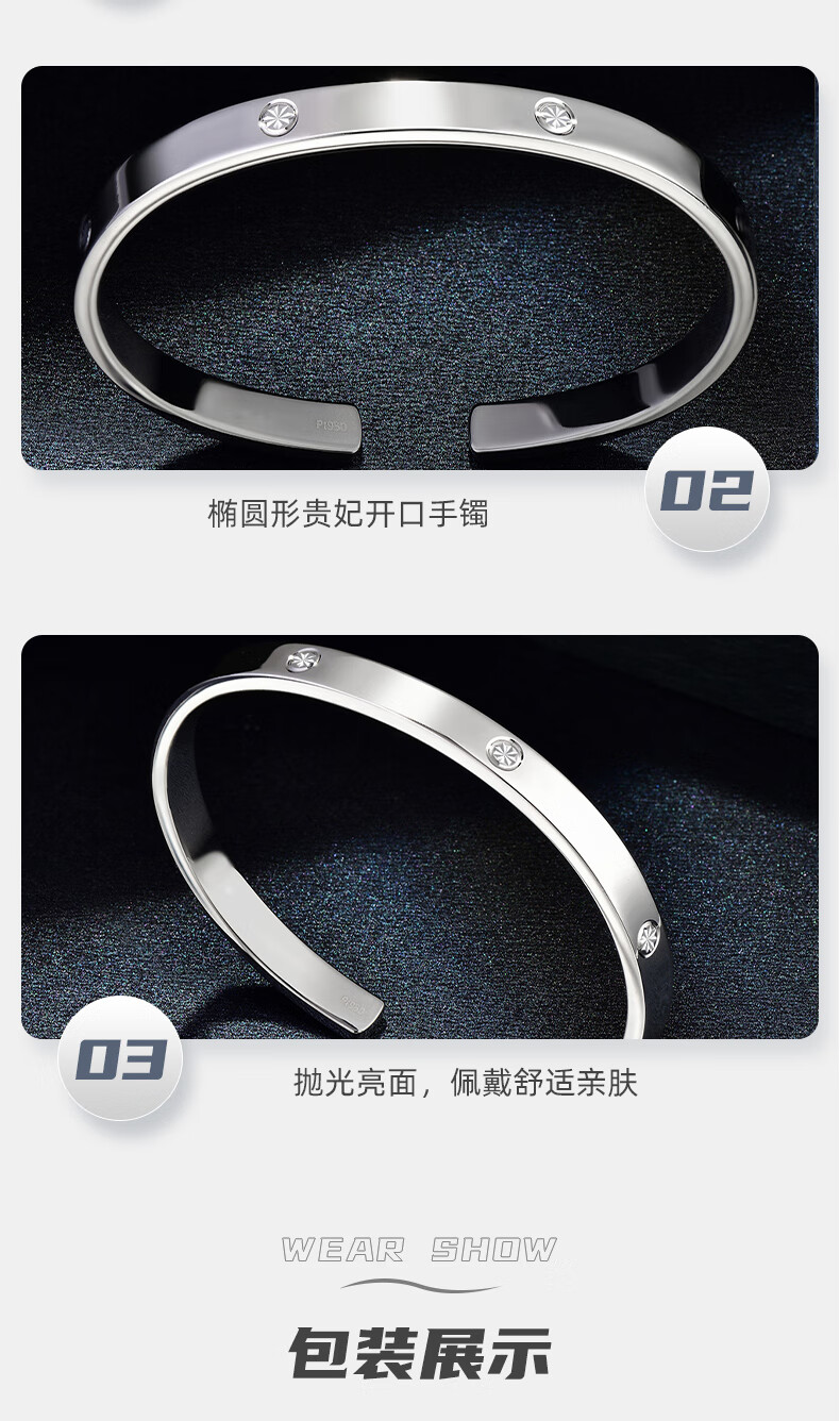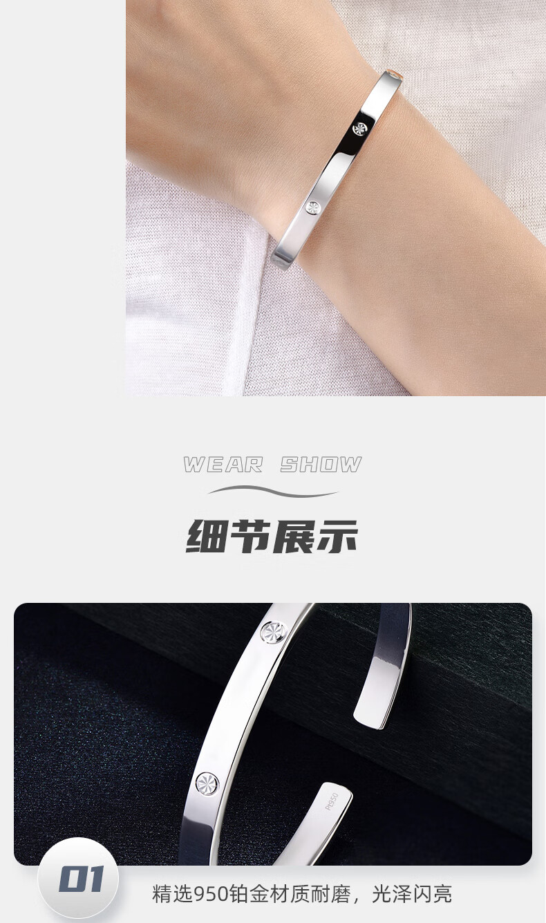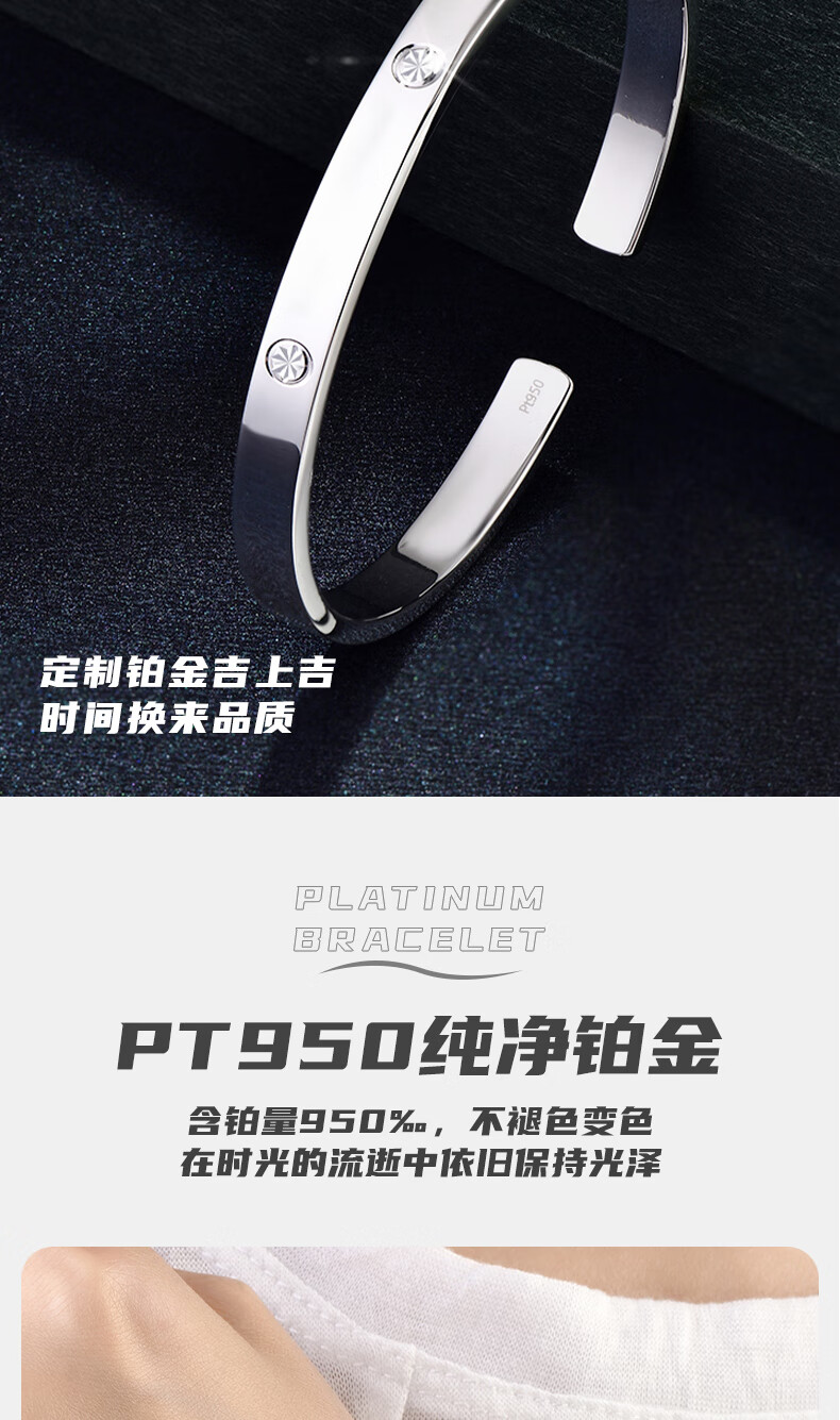 GsunG platinum men's bracelet new model PT950 open solid bracelet simple and elegant platinum card bracelet women's couple model priced by gram, please contact customer service before bidding for gold price