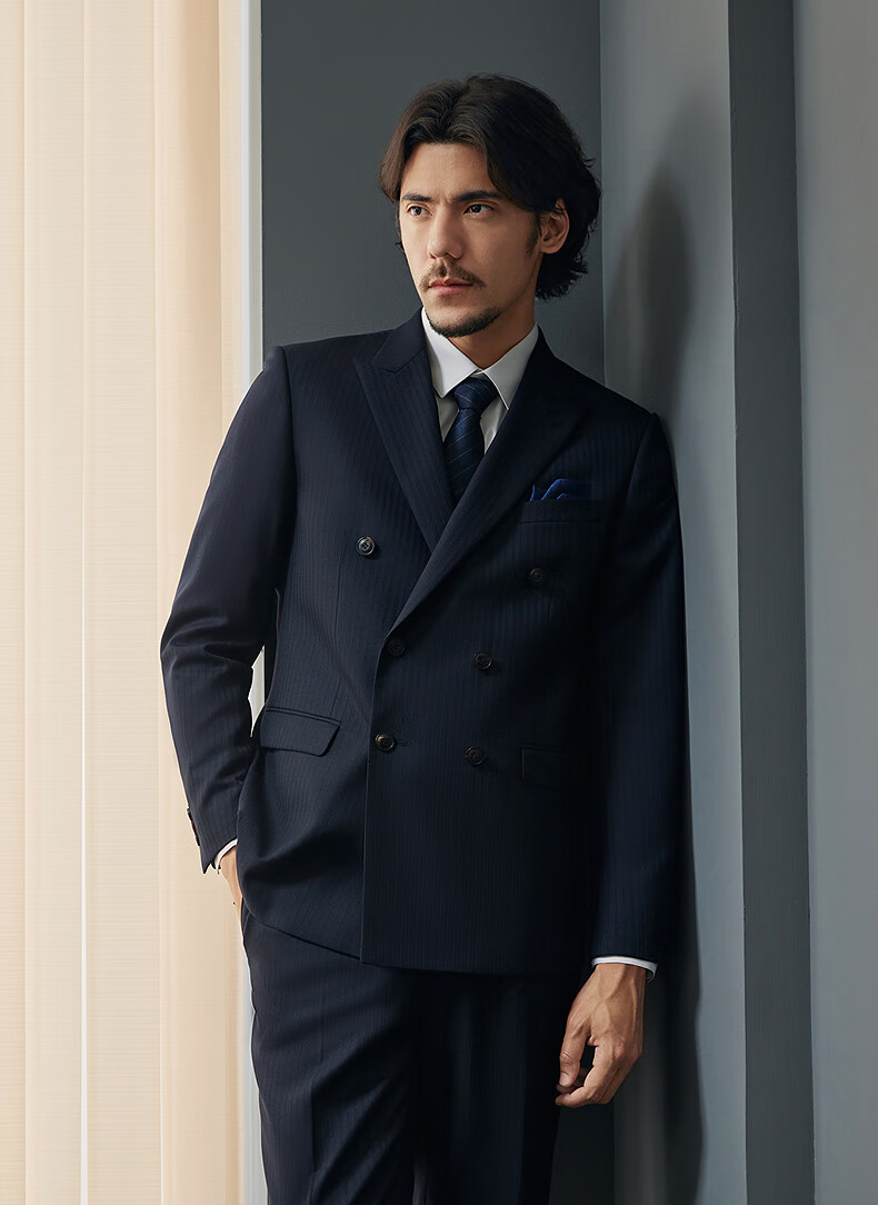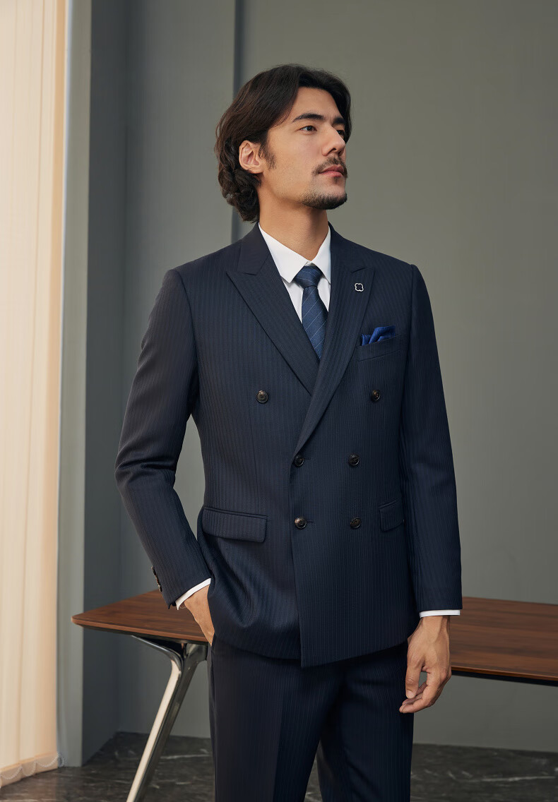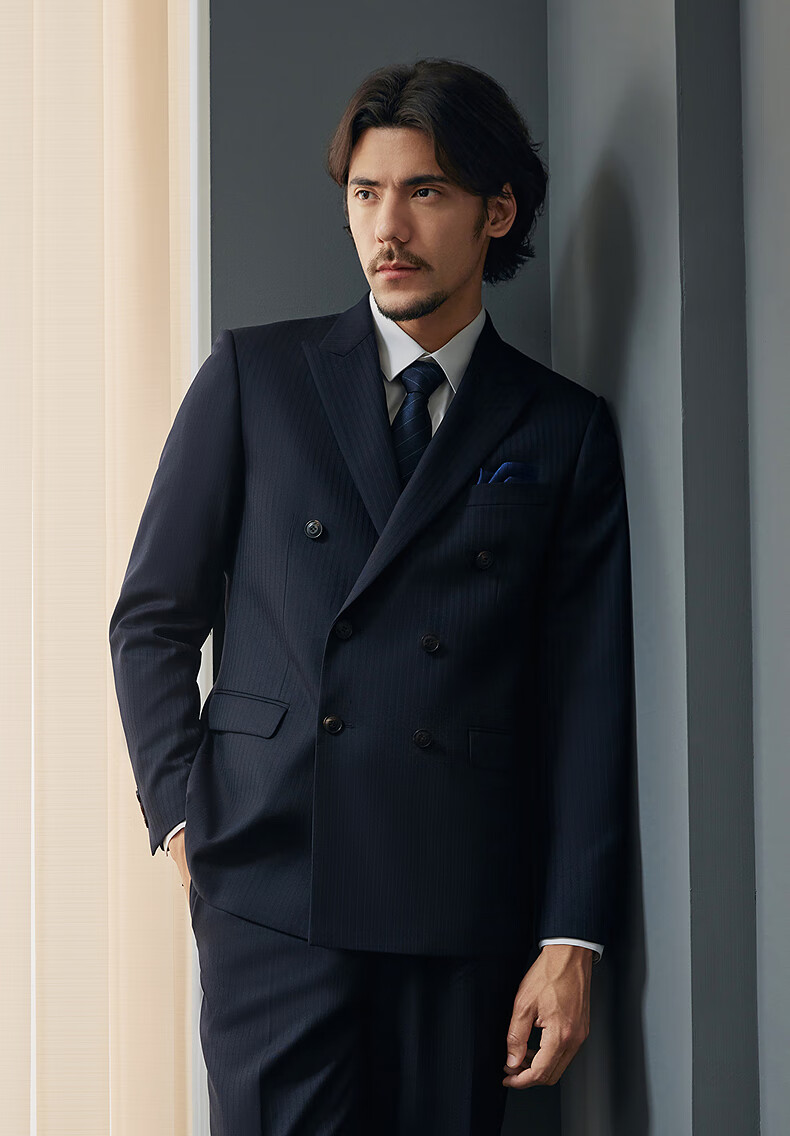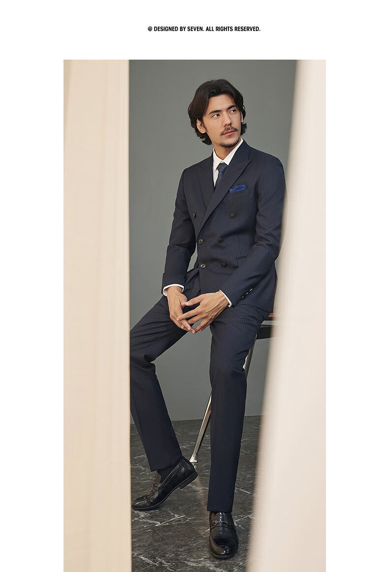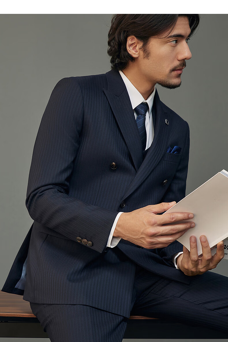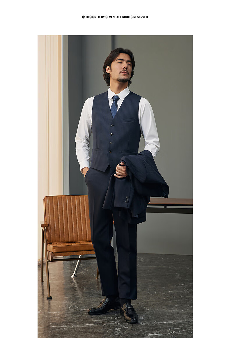 Qipai men's double-breasted suit men's spring and summer new business striped suit vest three-piece set including wool 0920 127C7092A-dark gray 46 (170/92B)