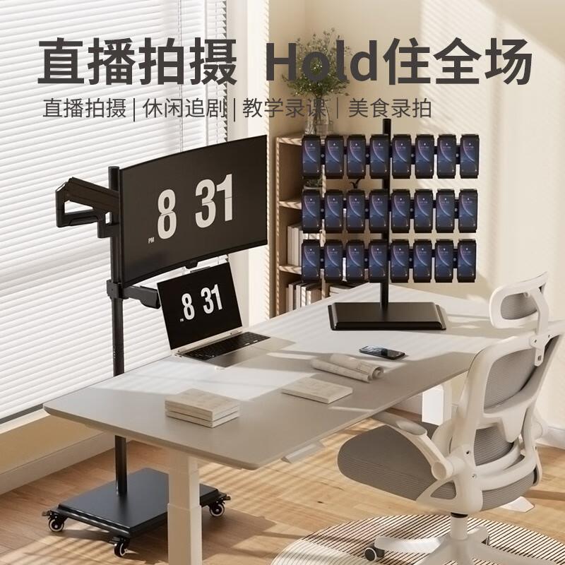 Jianleji Jianleji xt500 tablet mobile phone display floor-standing mobile no-punch free cantilever lying and watching special bracket for lazy people with ipad clip round mobile floor-standing mobile phone/tablet holder with storage rack