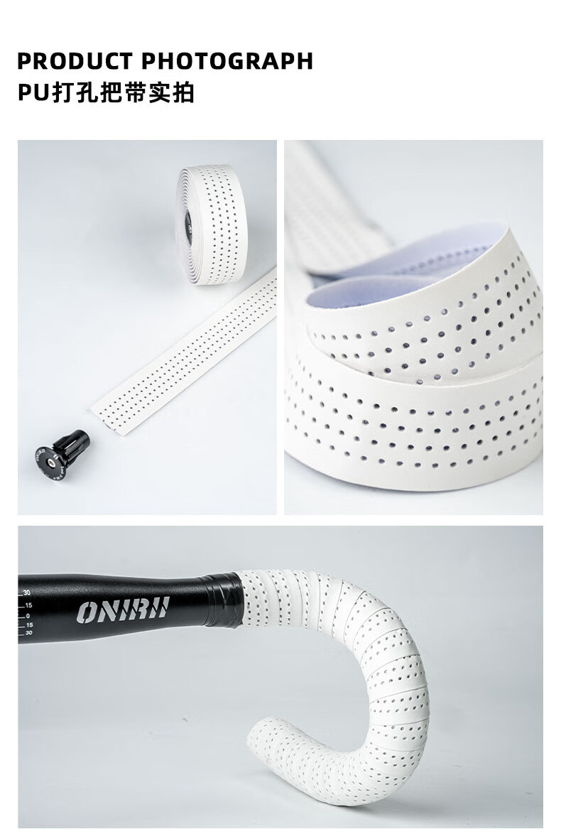 ONIRII Olini curved road bike silicone handlebar strap PU anti-slip and anti-sweat color gradient perforated bicycle handle strap PU perforated white