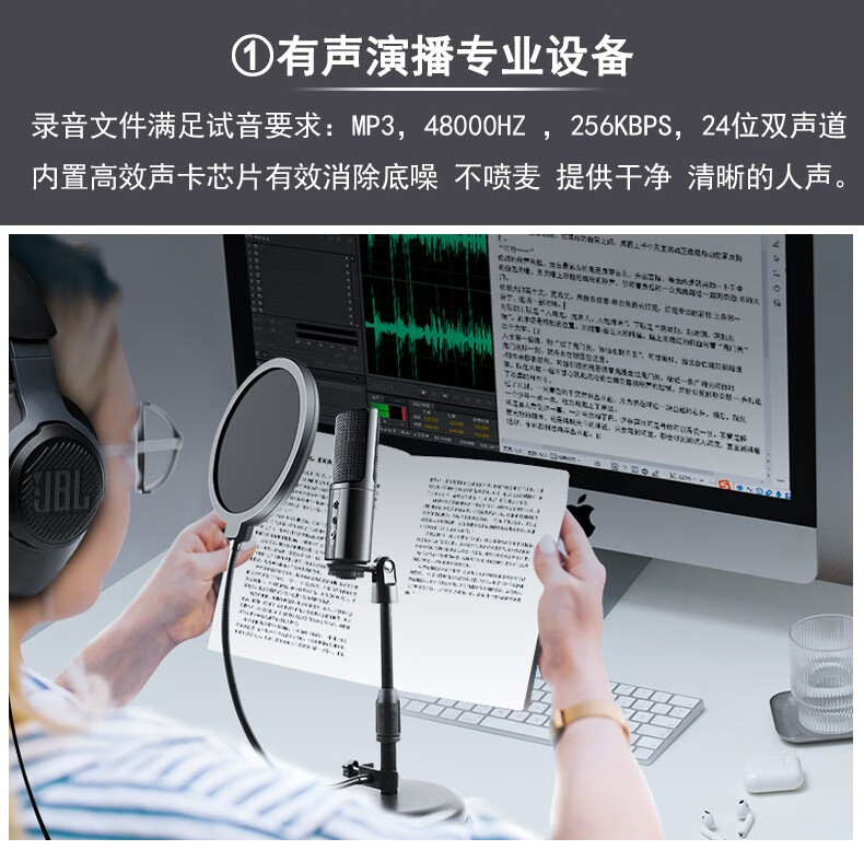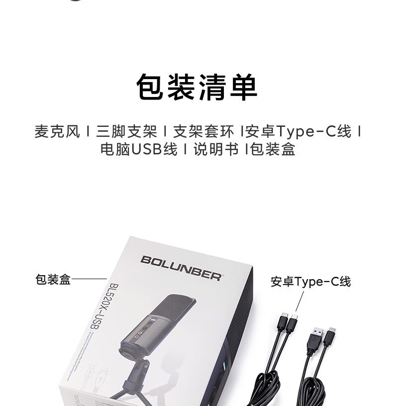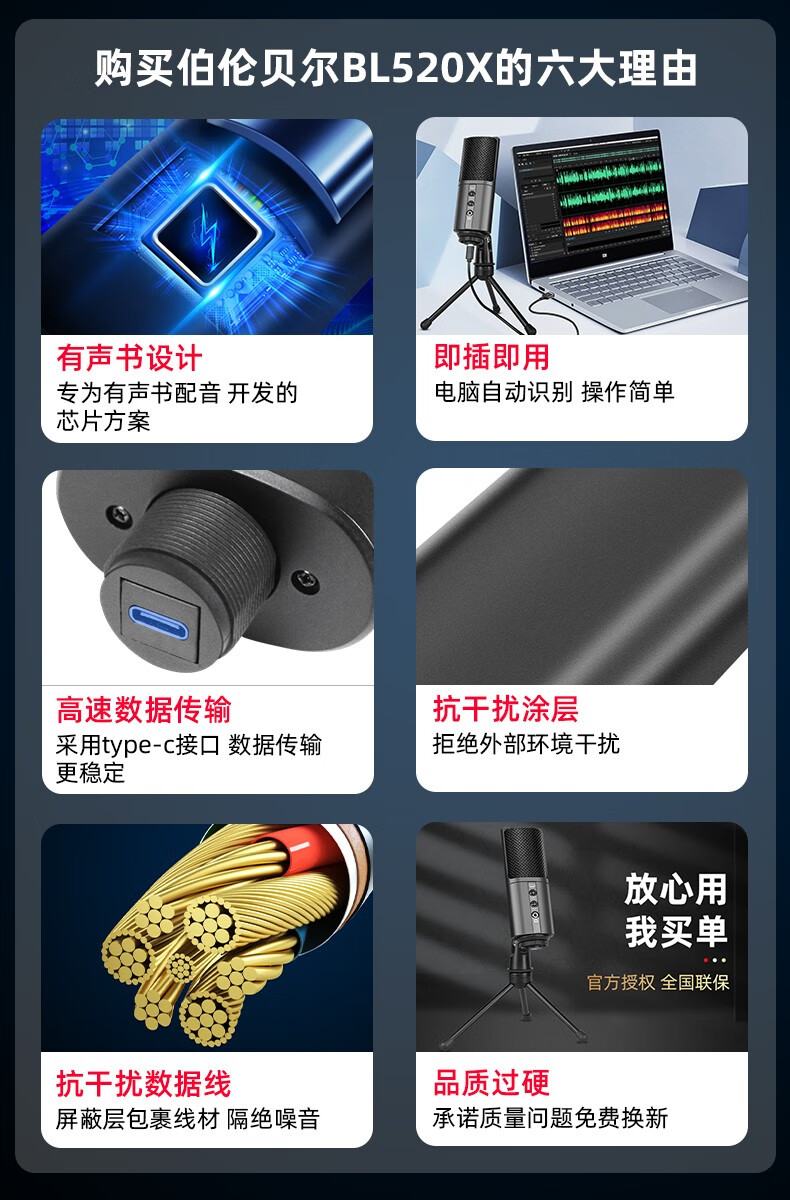 Burren Bell BL520X-USB condenser microphone audiobook professional recording equipment novel Himalaya mobile phone microphone recitation dubbing broadcast set anchor live broadcast noise reduction model with desktop stand + monitoring headphones + acoustic sound insulation cotton