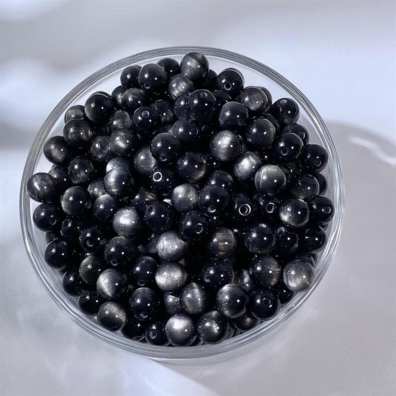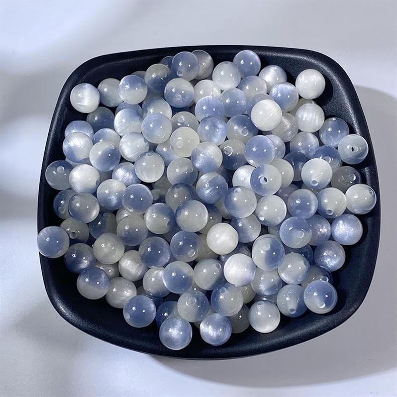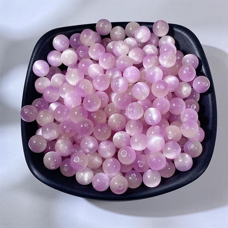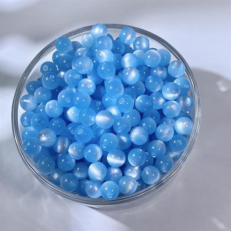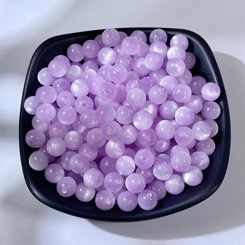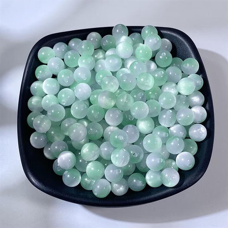 Qimei Love Cat's Eye Round Beads Loose Beads DIY Handmade Glazed Bracelet Necklace Hairpin Material Children's Chain Accessories Randomly Mixed Colors 100 Pieces 8MM
