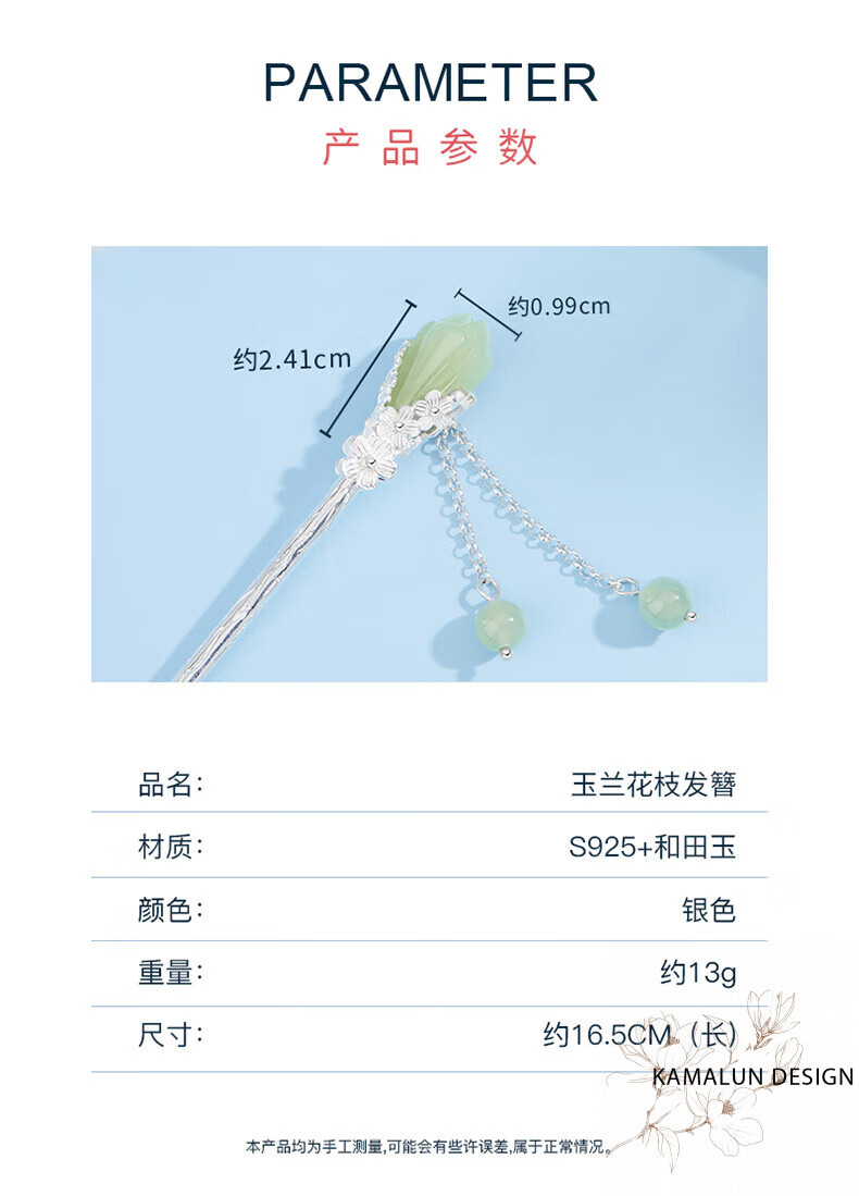 Kamalun (KAMALUN) hairpin for women 2025 new style ancient style hairpin new Chinese style high-end tassel step shake hairpin Hanfu hair accessories for girlfriend Magnolia flower hairpin + brand gift box