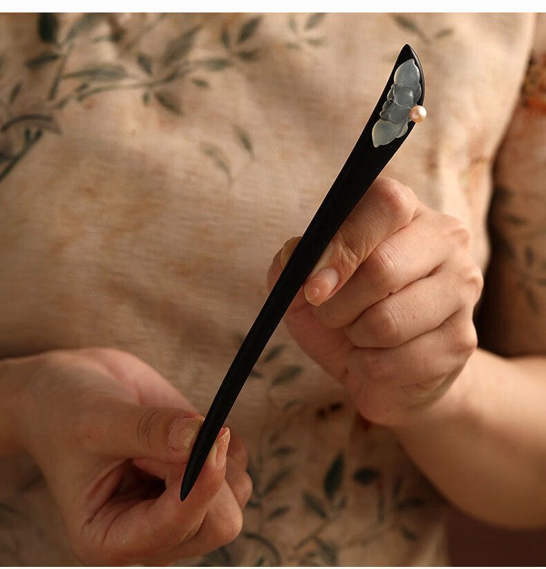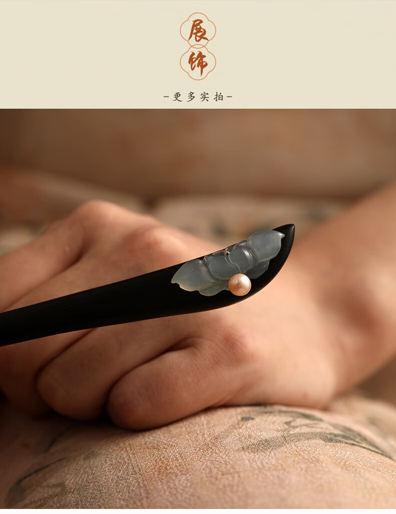 Su Shiliu 2025 new ebony wood Xiu jade hairpin daily Hanfu hair accessories cheongsam accessories hairpin simple wooden hairpin ebony-simple Xiuyu pearl hairpin