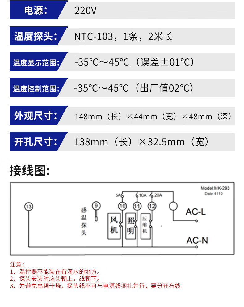 HE-293 Thermostat Freezer Beer Beverage Cabinet Display Cabinet Kitchen Workbench Intelligent Temperature Controller