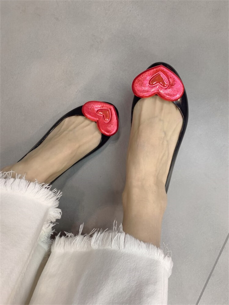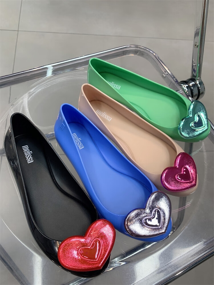 Melissa2024 new love round toe casual shallow mouth women's single shoes jelly shoes flat sandals black size 38