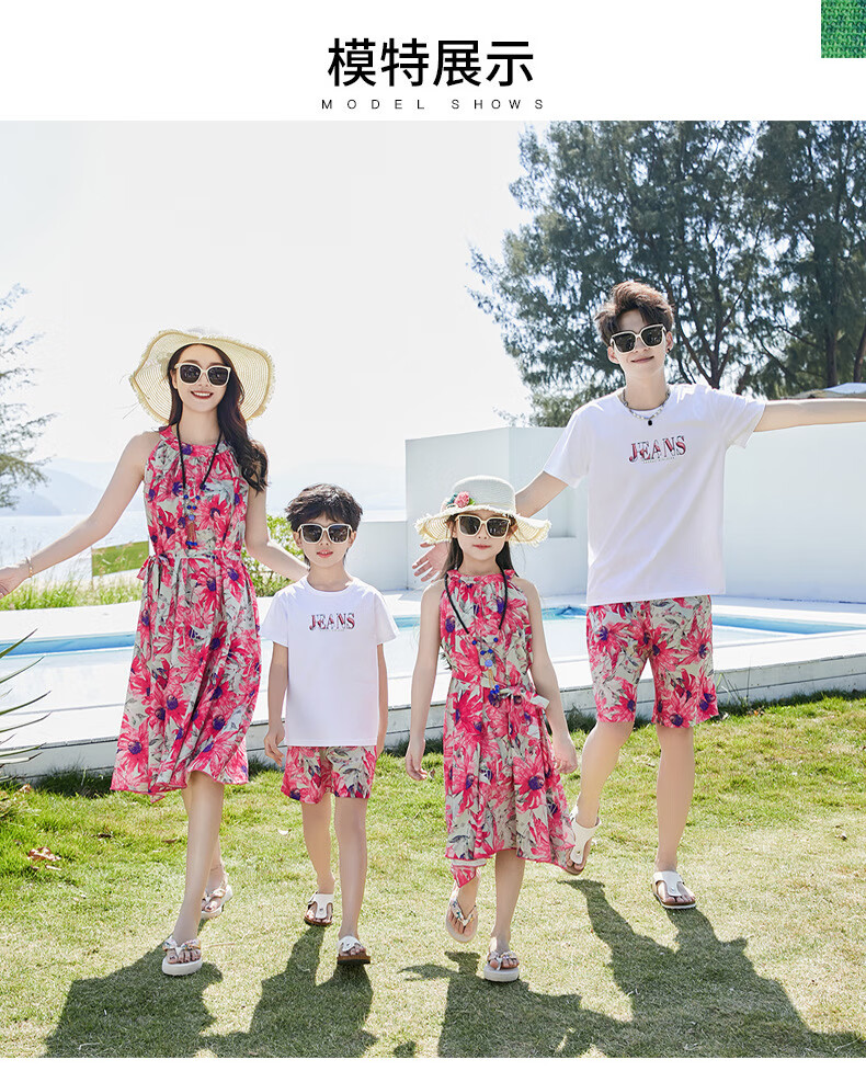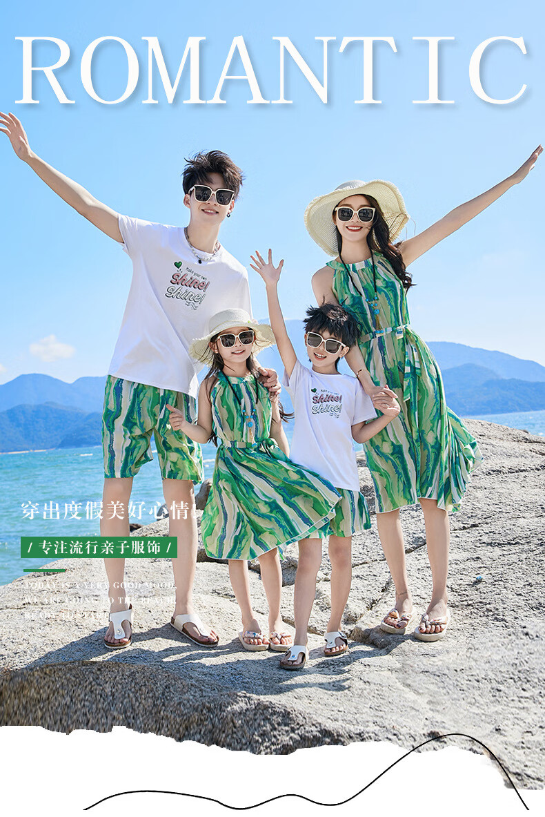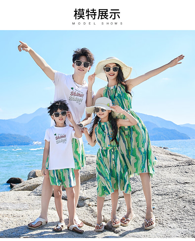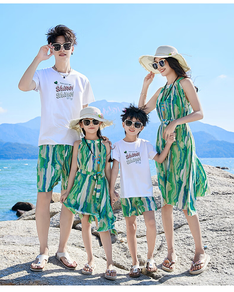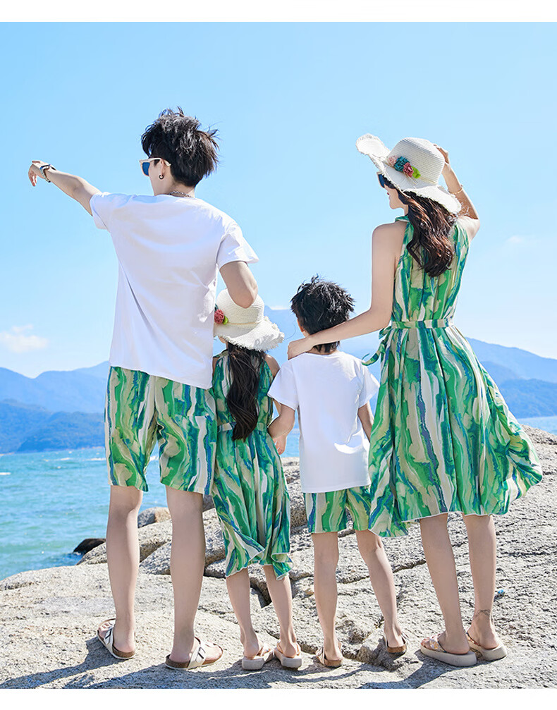 G.duck Sanya seaside vacation parent-child outfit family of four photo taking beach skirt mother and daughter dress summer father and son suit green (default female skirt/male suit) Mom M