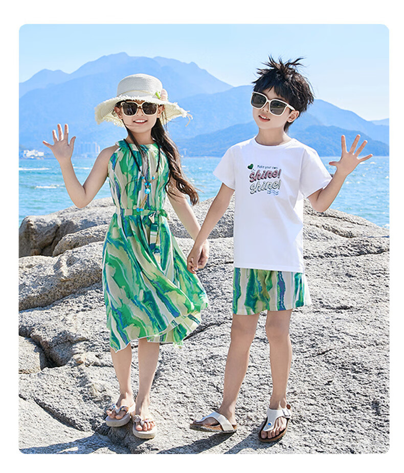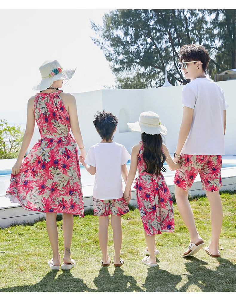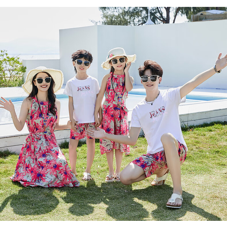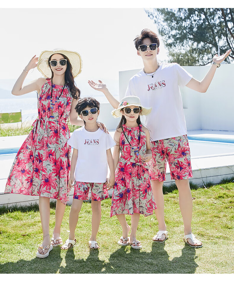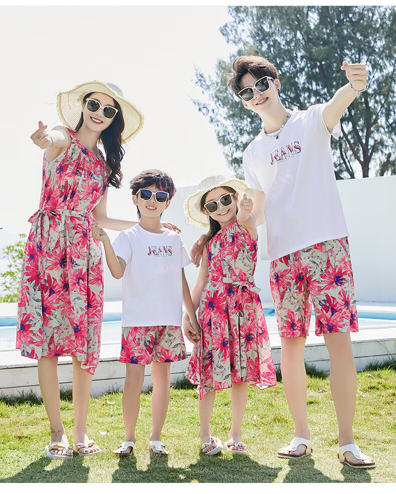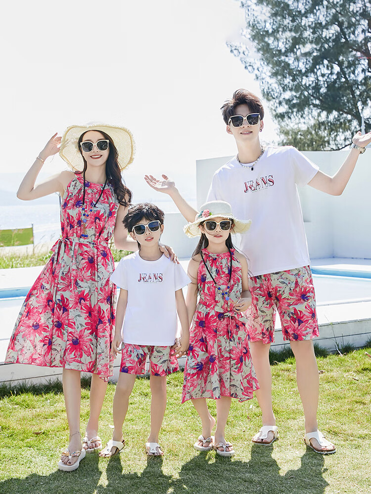 G.duck Sanya seaside vacation parent-child outfit family of four photo taking beach skirt mother and daughter dress summer father and son suit green (default female skirt/male suit) Mom M