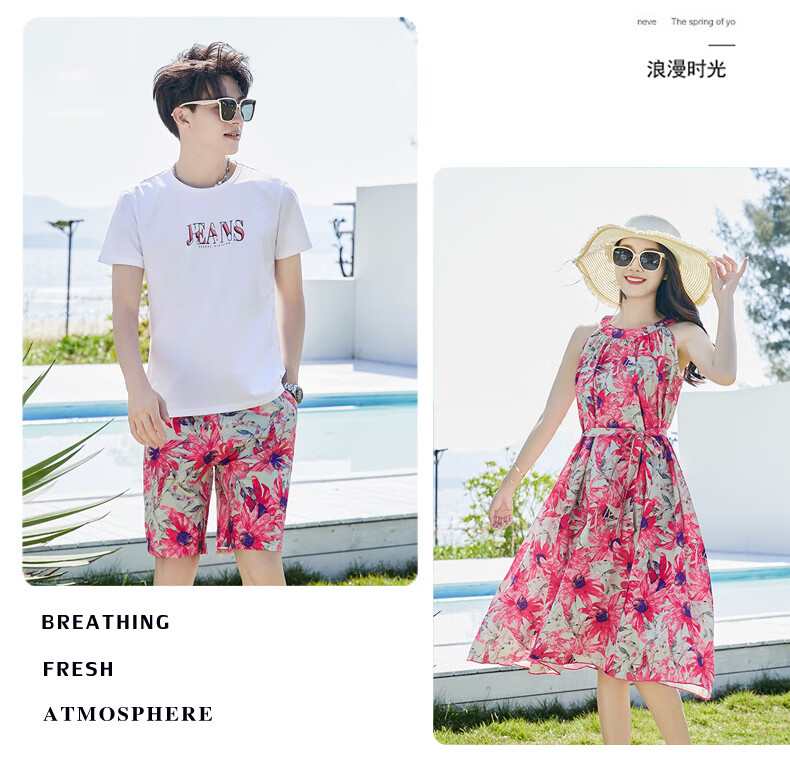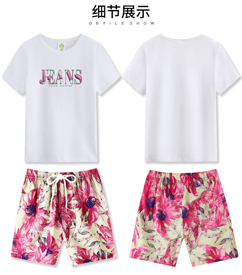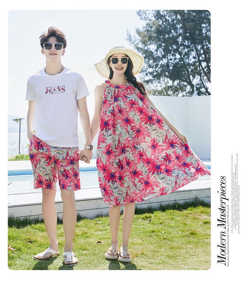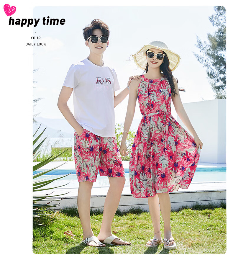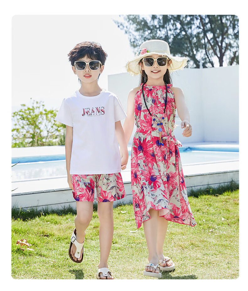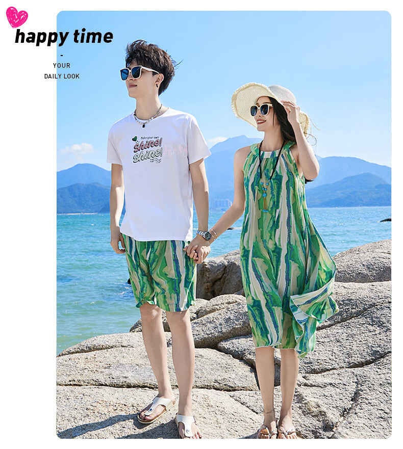 G.duck Sanya seaside vacation parent-child outfit family of four photo taking beach skirt mother and daughter dress summer father and son suit green (default female skirt/male suit) Mom M