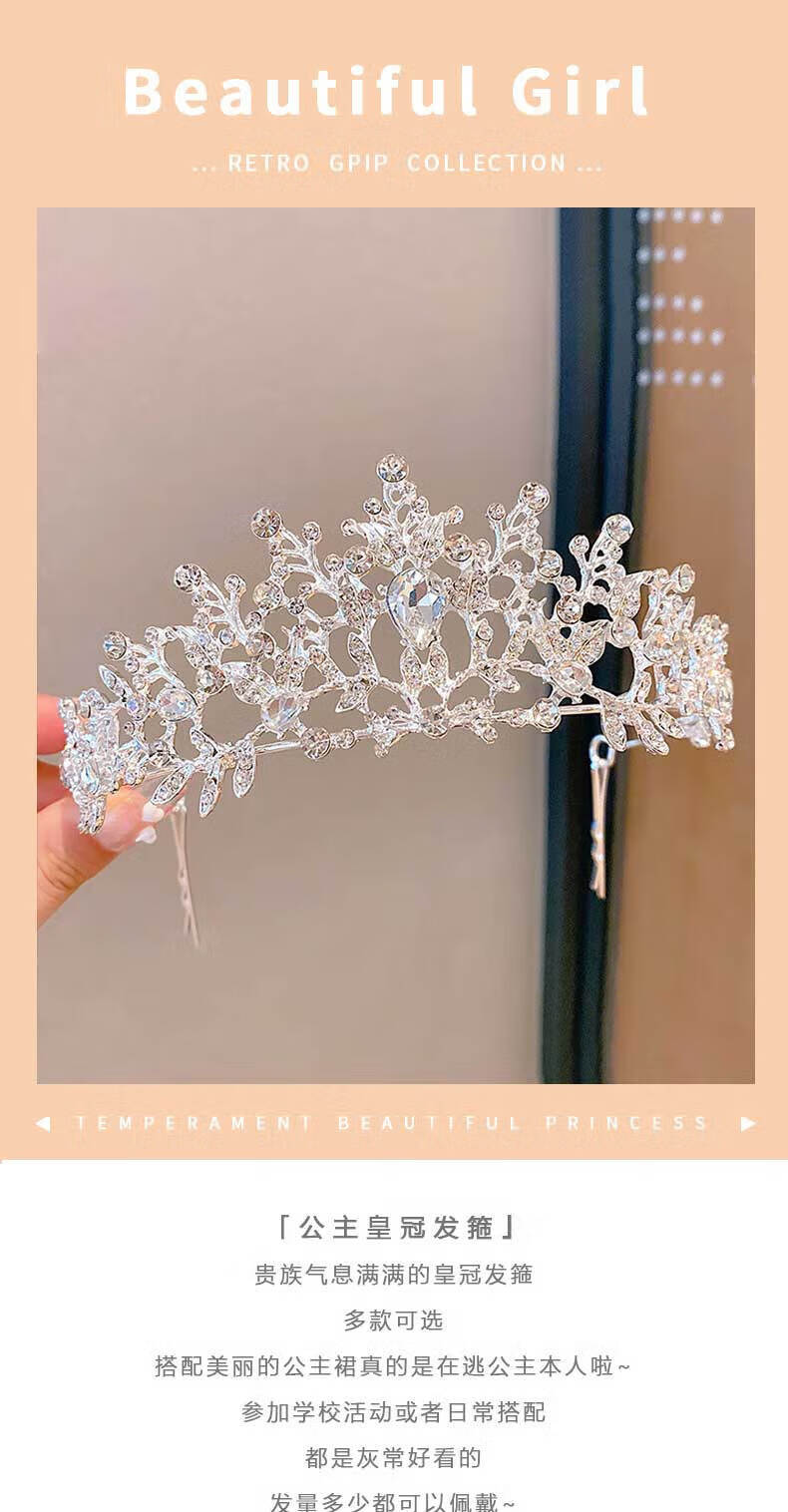 Muqian birthday crown tiara for girls 18 years old coming of age crown headband children's high-end little princess queen yellow crown pure handmade pearl crown