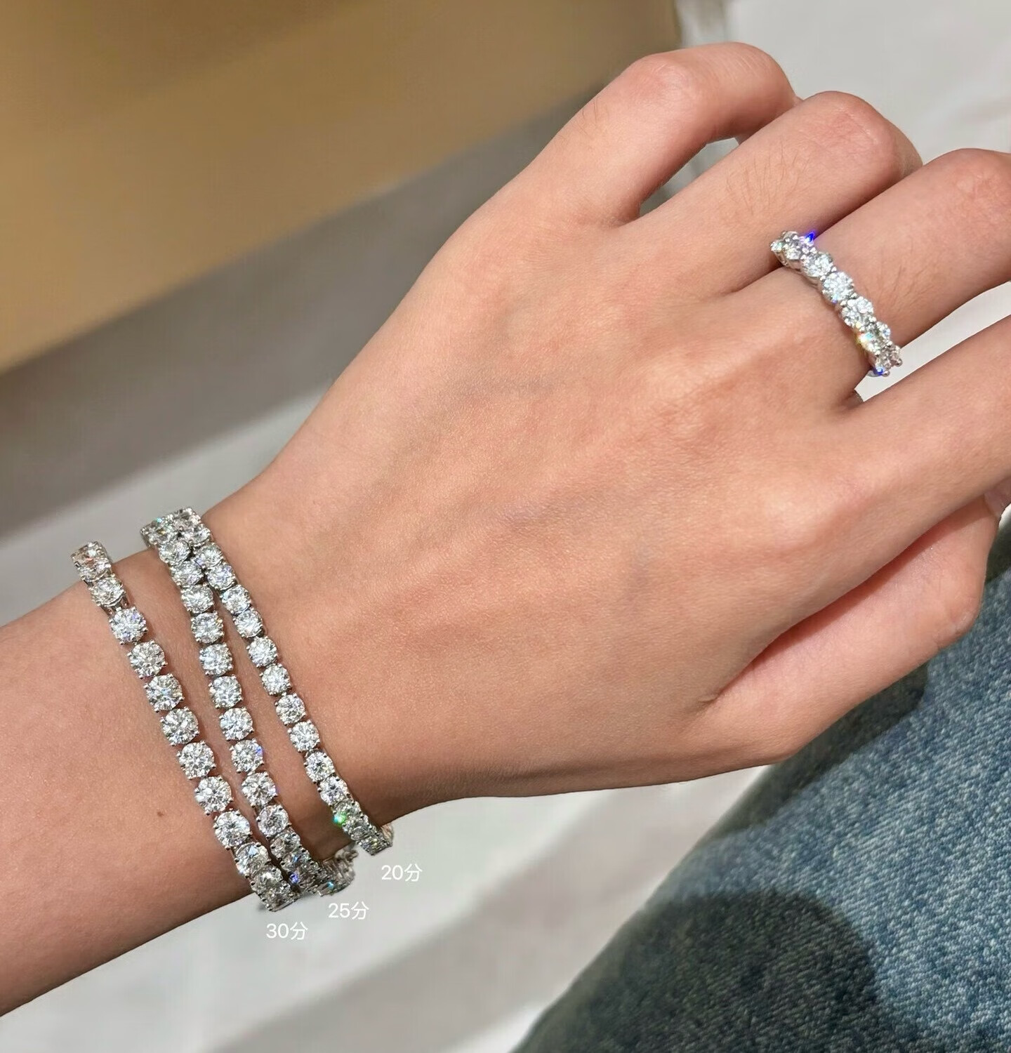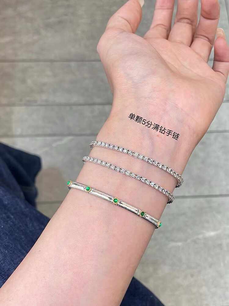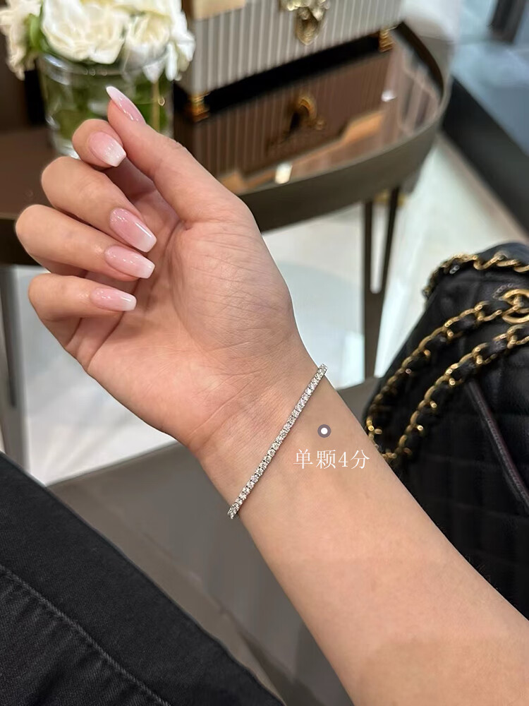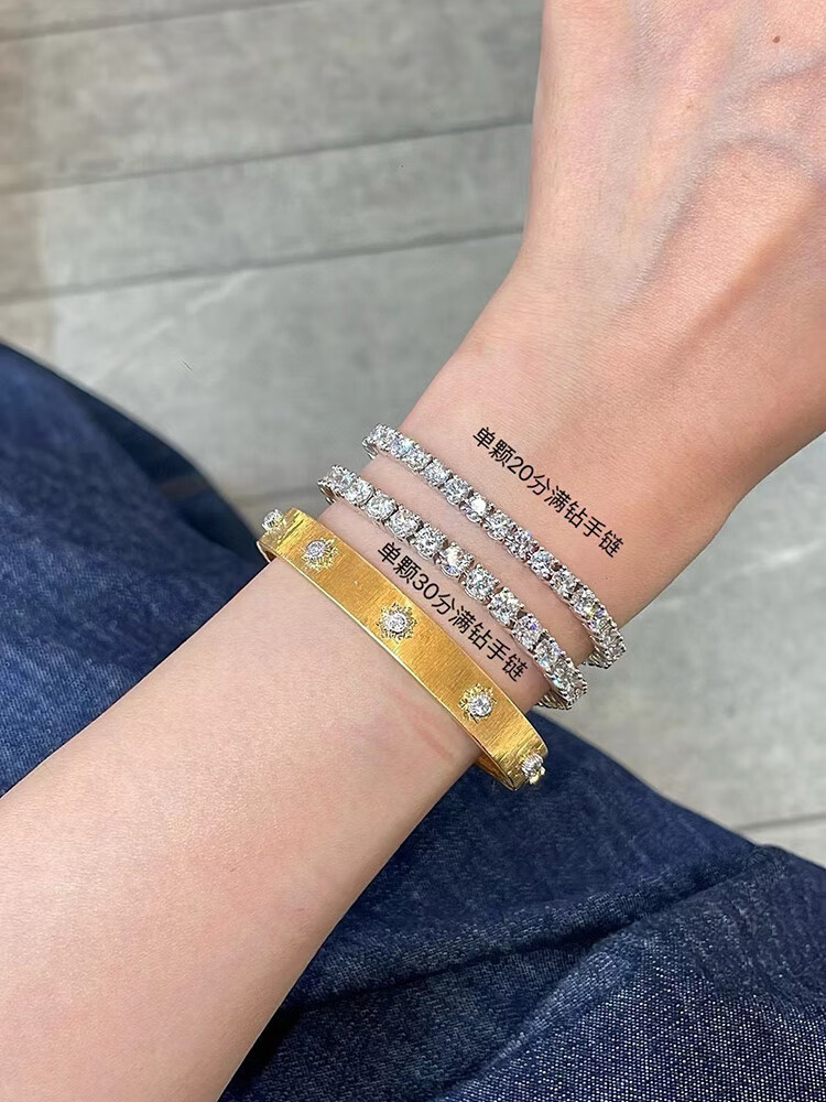 Shihua Jewelry picked up leaked white 18K gold four-claw full diamond bracelet for women, natural diamond one carat diamond bracelet, tennis bracelet bracelet, single 1 point 18K gold, total 95.3 points diamond 17CM