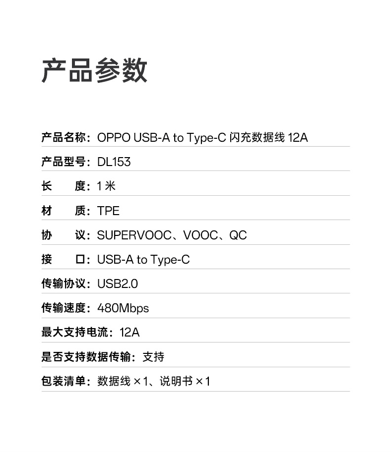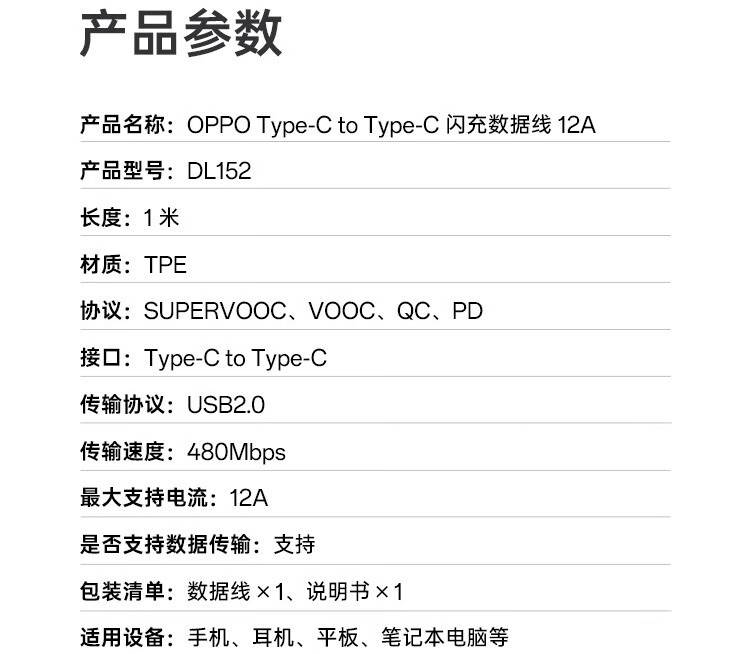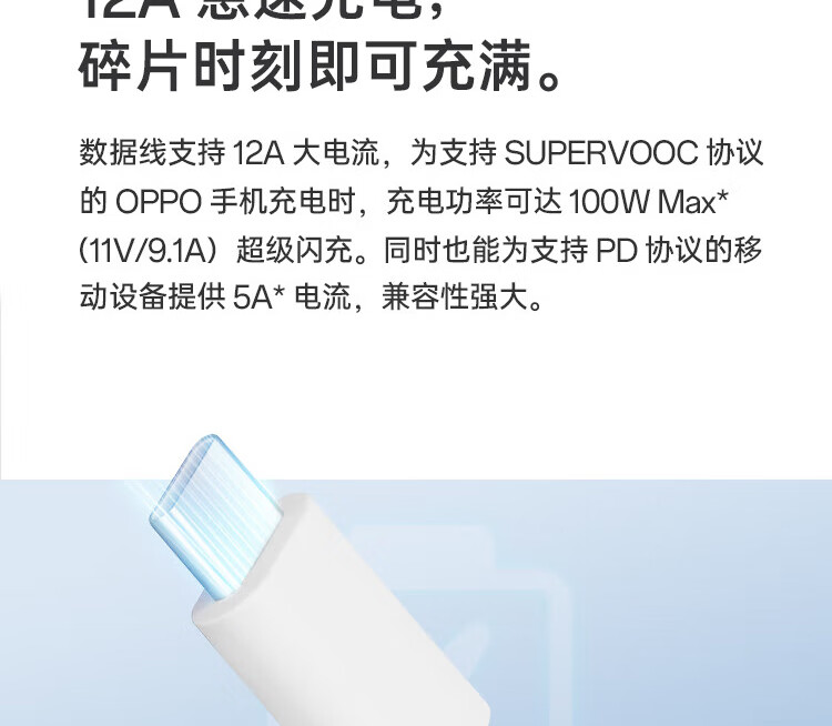 OPPO data cable original charging cable 100W flash charging 12A fast charging find x8ultra x7x6x5pro Reno14 13 12 11 10pro+k11k12 OnePlus Ace3 12A flash charging data cable (AtoC) 1 meter