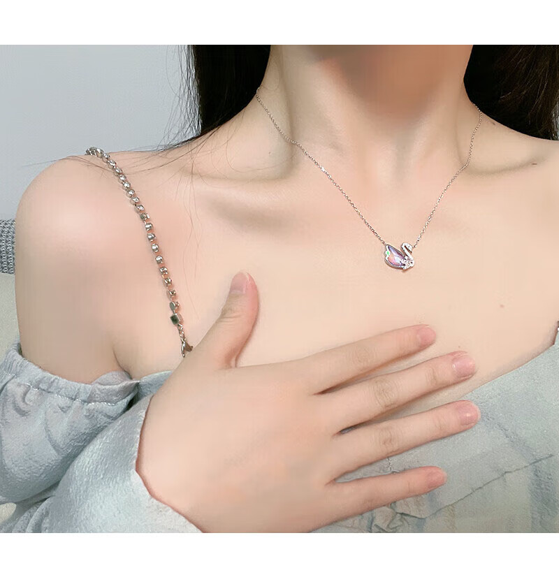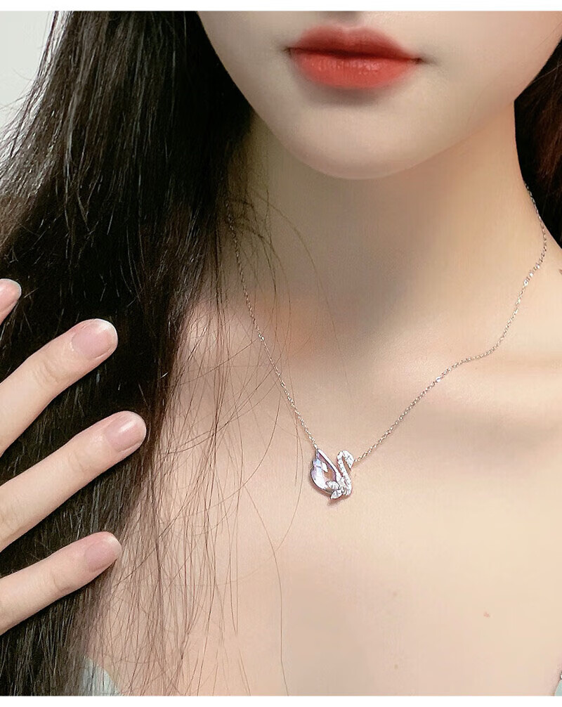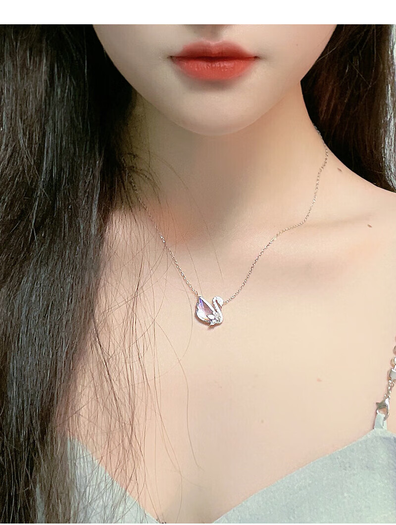 BOEAY Little Swan Glazed Stone Pendant Pure Silver Necklace for Women 2025 New Light Luxury Niche Gift for Girlfriend Birthday Gift for Girls Little Swan Silver Necklace