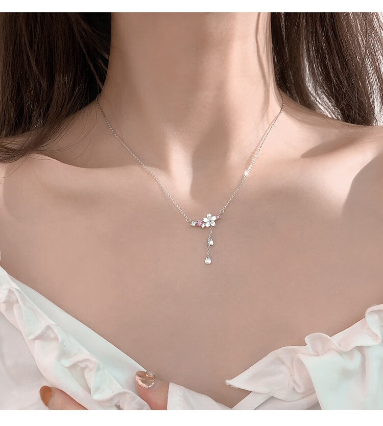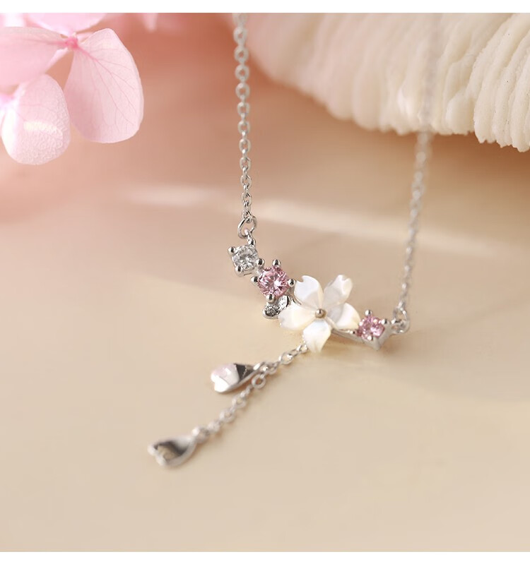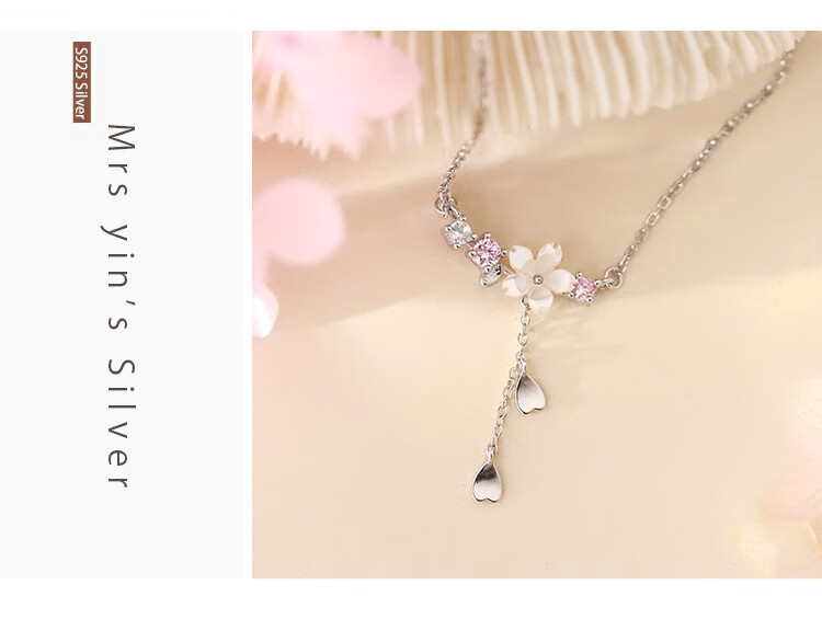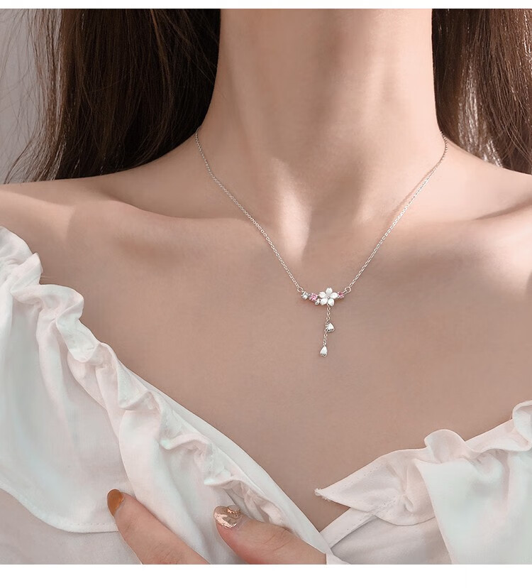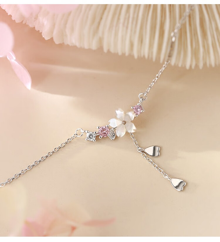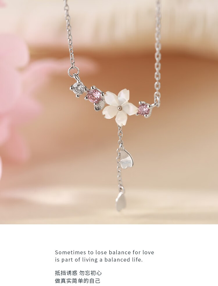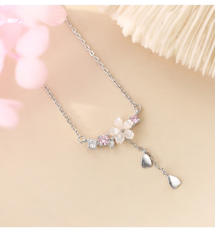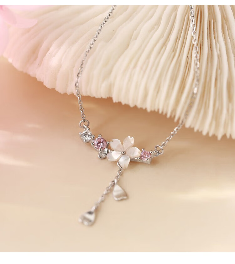 BOEAY Sakura sterling silver necklace women's pendant 2025 new light luxury niche gift for girlfriend and wife birthday gift for girls Qicang shipped Sakura necklace