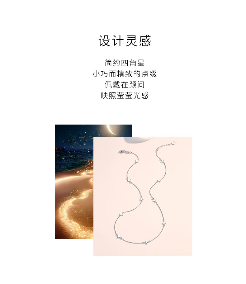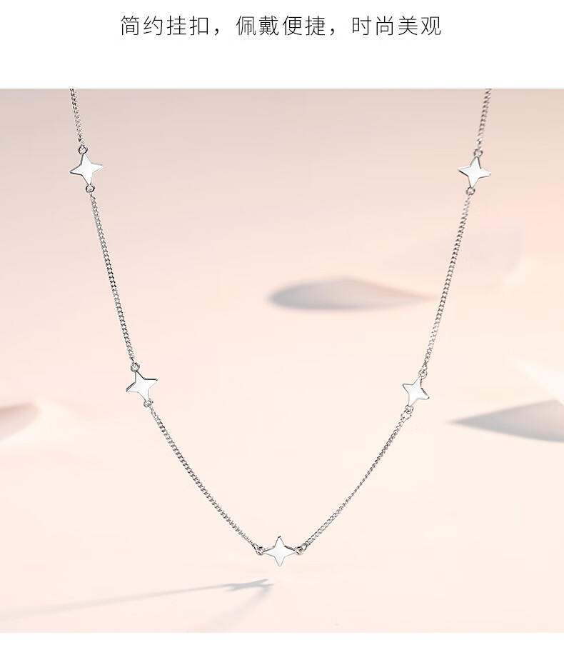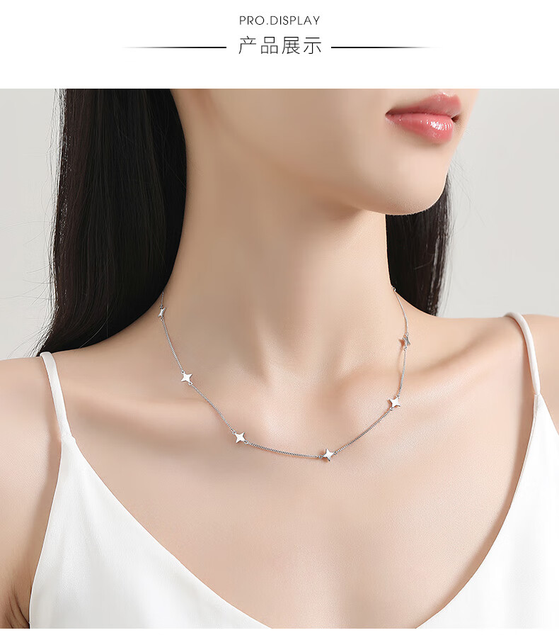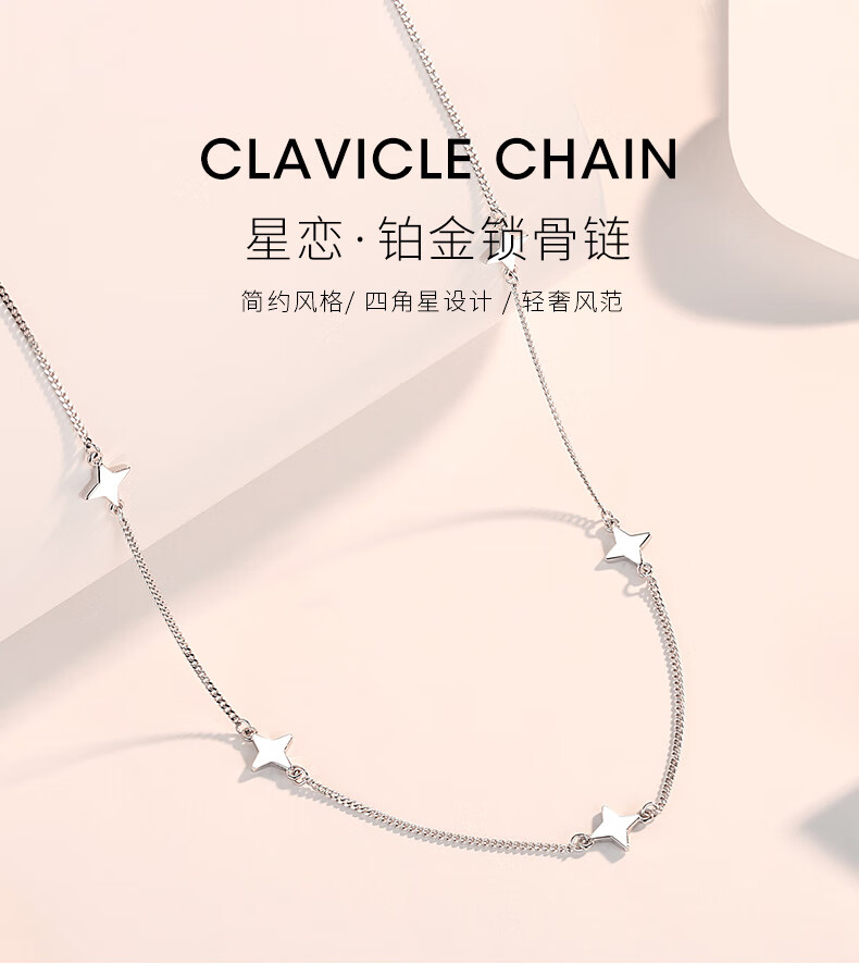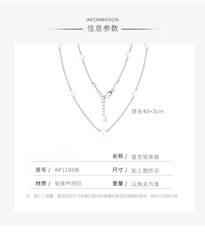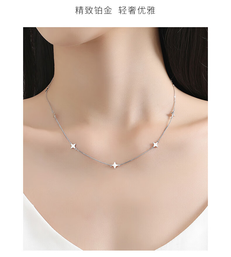 Tan Jin's new platinum necklace women's model pt950 platinum riding crop side chain fashion four-pointed star clavicle chain plain chain PT950 weight 6.1-6.2g length 43+3cm