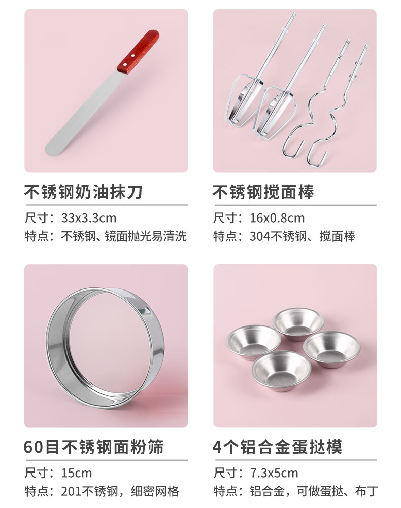 Junkiss baking tool set entry-level household pizza baking pan oven for making chiffon biscuit tarts novice small cake mold upgrade novice package electric egg beater + electronic scale