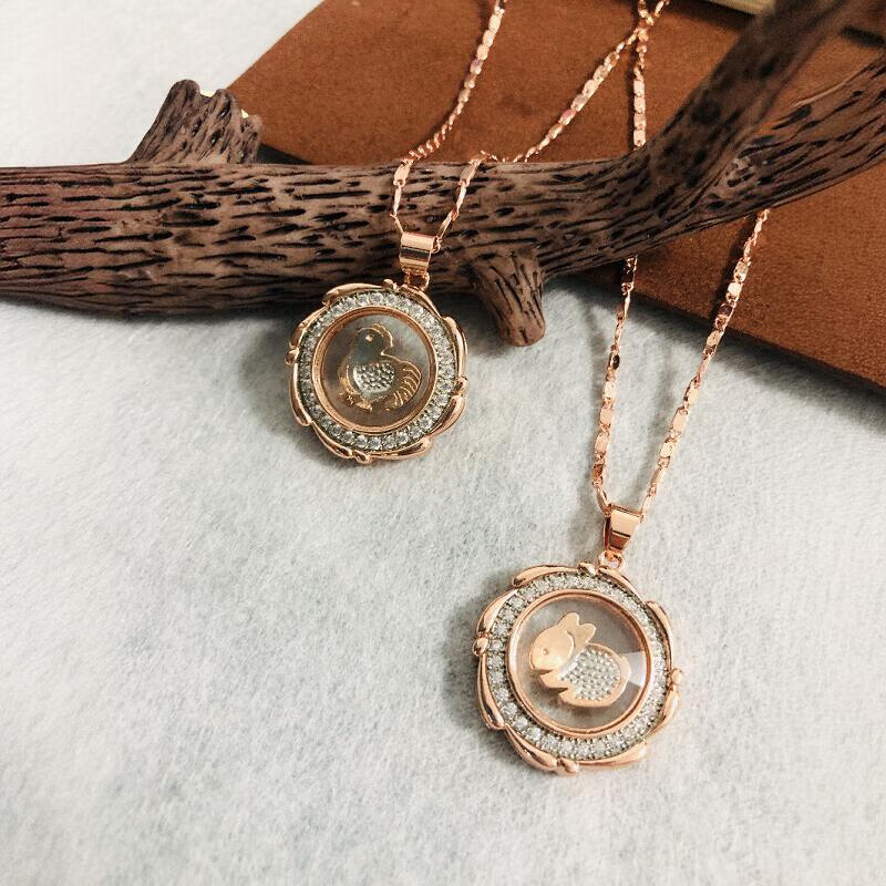 Hengchengxiang HOECENXAR sense rose gold whirlwind 18 gold color rotating zodiac pendant, temperament women's fashion and versatile necklace, whirlwind rose gold zodiac monkey chain
