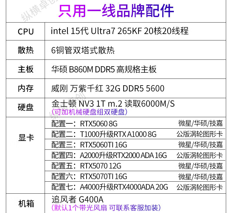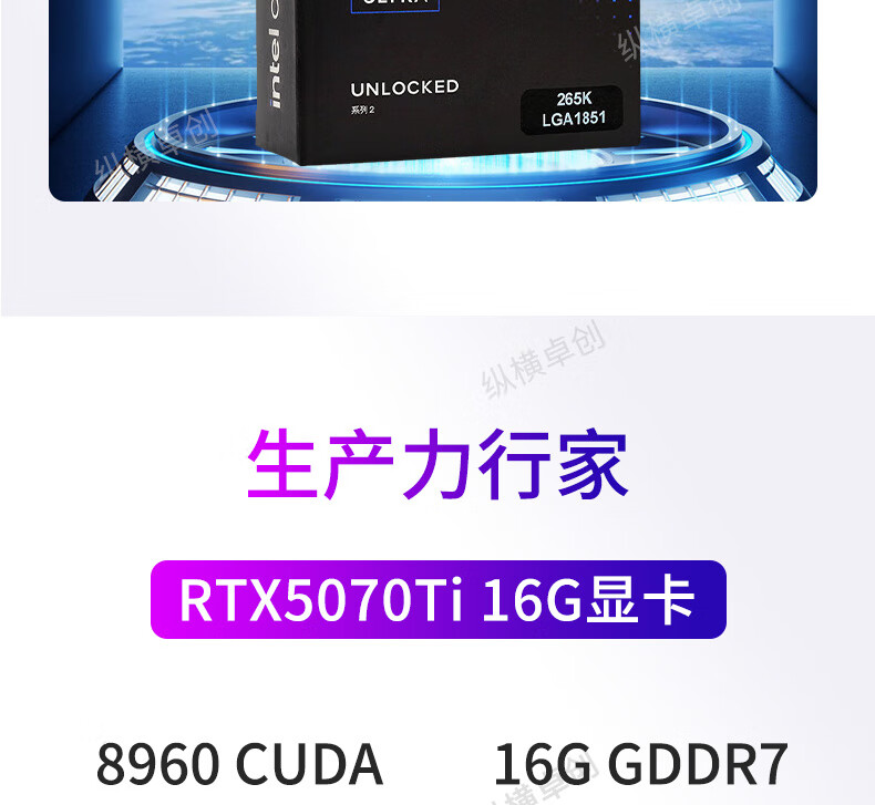 Zongheng Zhuochuang designer graphics workstation video editing 20-core U7 265KF/RTX5070Ti drawing 3D modeling rendering drawing assembly desktop computer host configuration four U7 265KF+2000 ADA 16G