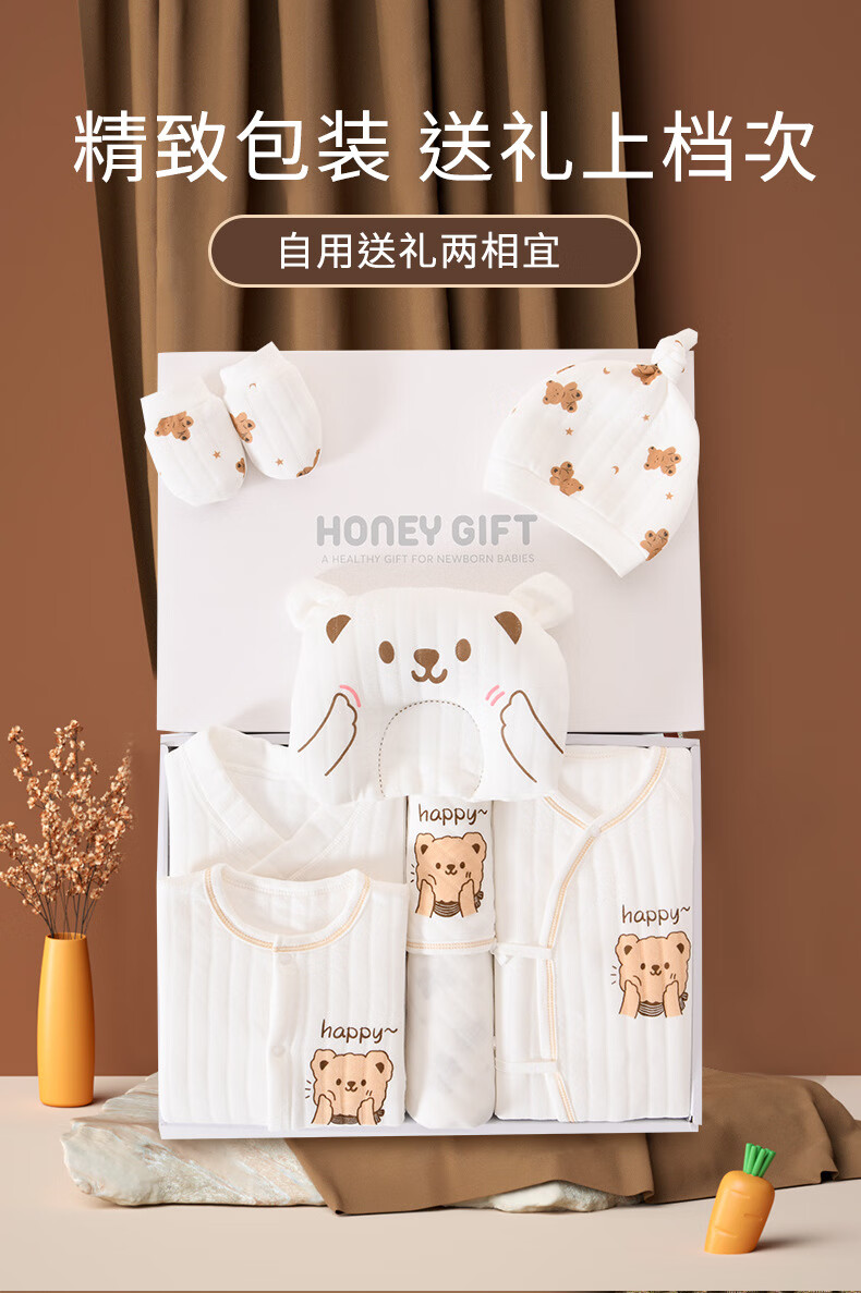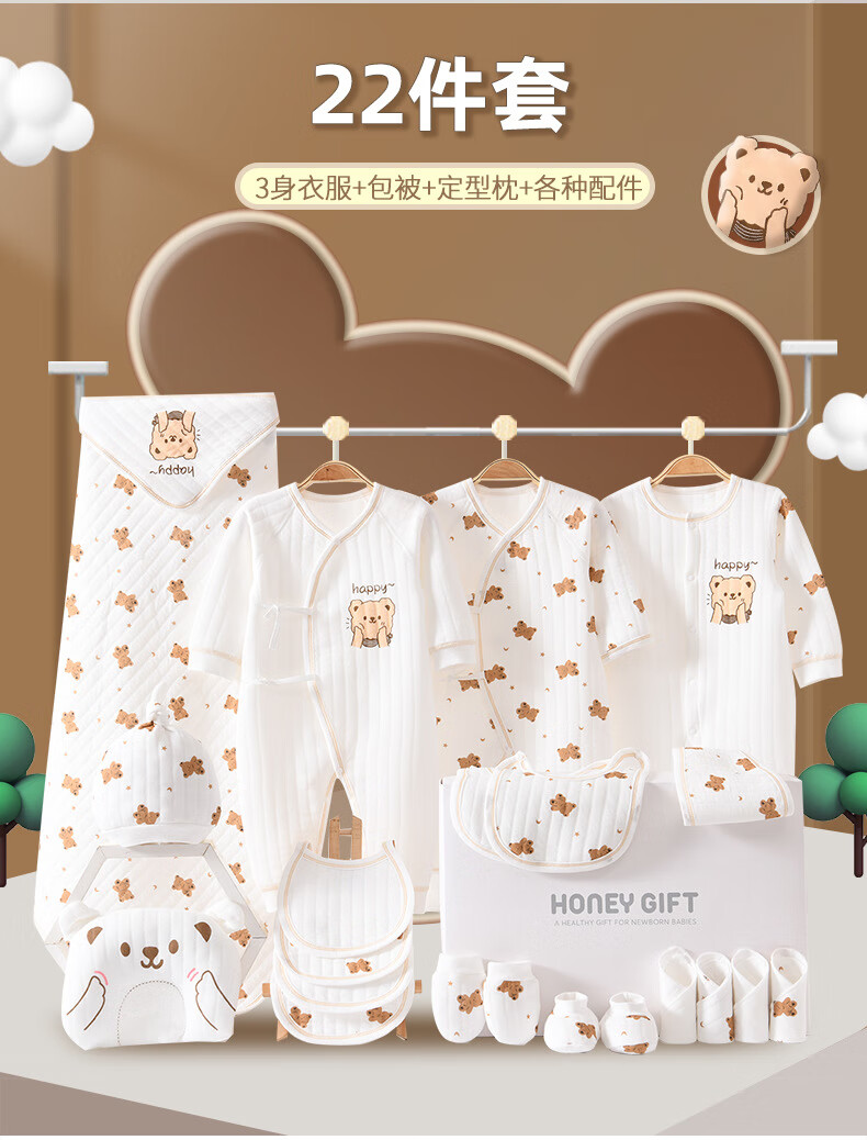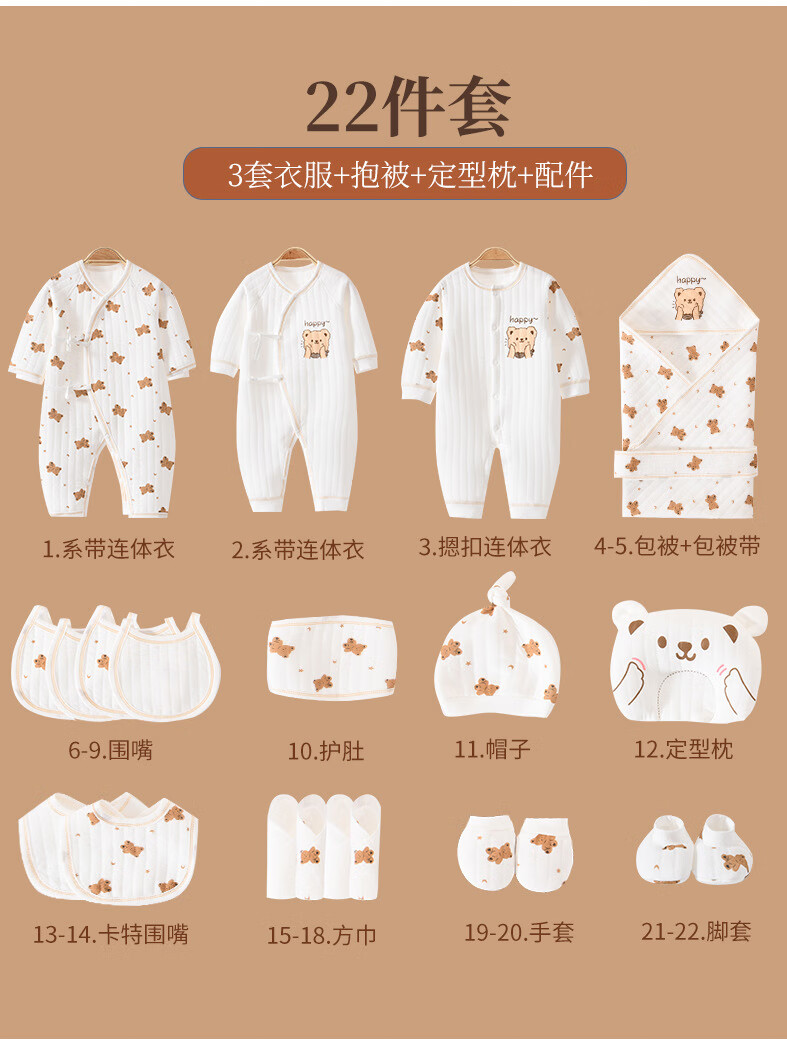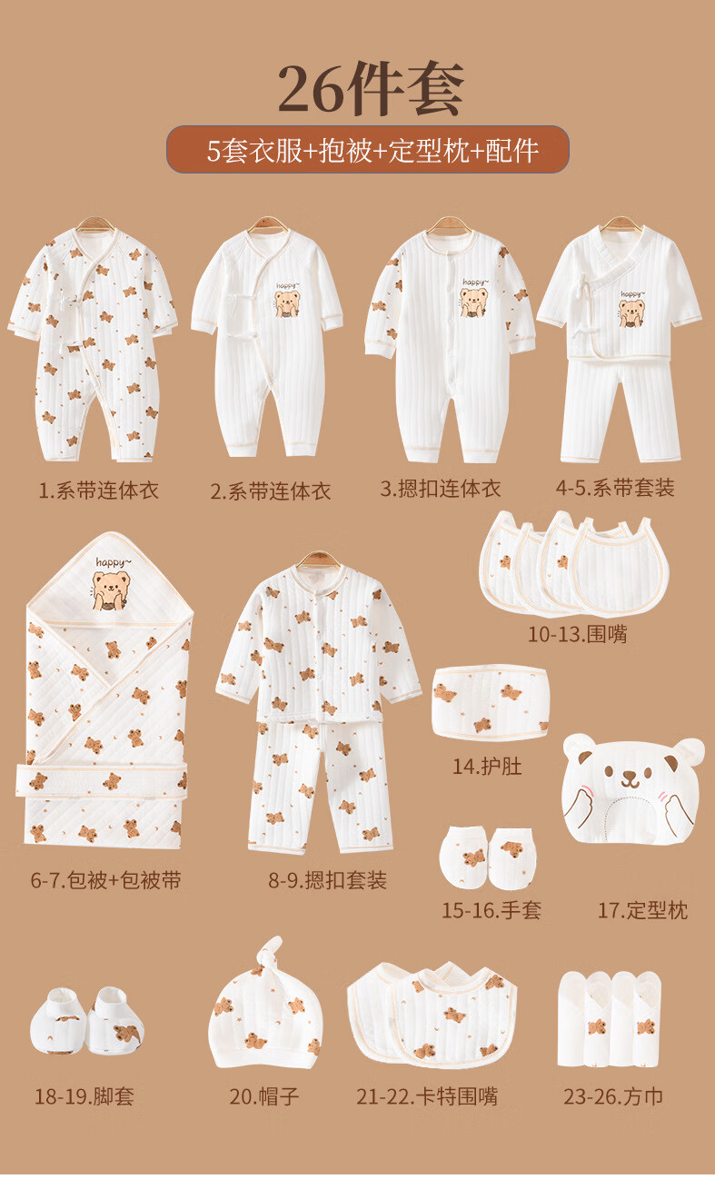Disney Newborn Clothes Gift Box Baby Pure Cotton Set Newborn Full Moon Baby Set Box for Meeting Gifts 26-piece Set Four Seasons Beige Password Box 59cm Suitable for 0.3 Month Baby