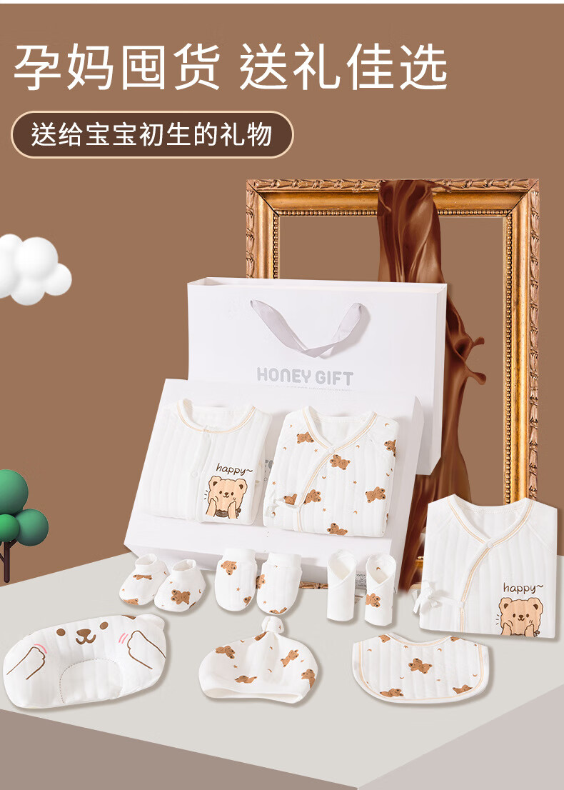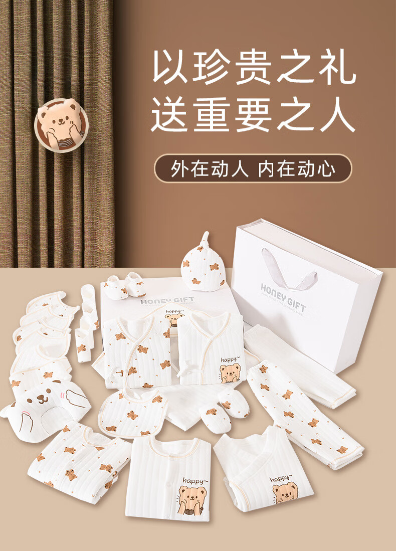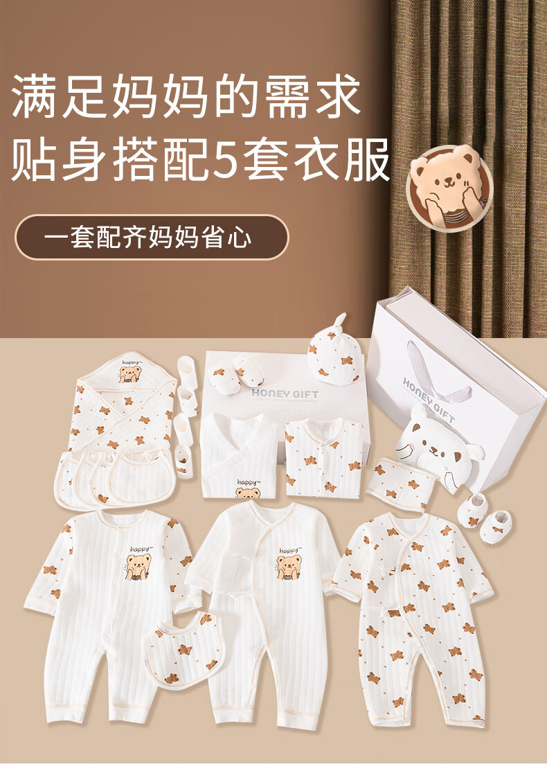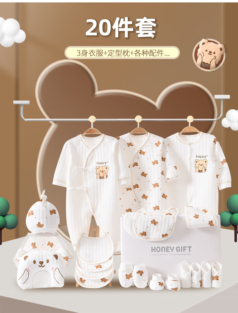 Disney Newborn Clothes Gift Box Baby Pure Cotton Set Newborn Full Moon Baby Set Box for Meeting Gifts 26-piece Set Four Seasons Beige Password Box 59cm Suitable for 0.3 Month Baby