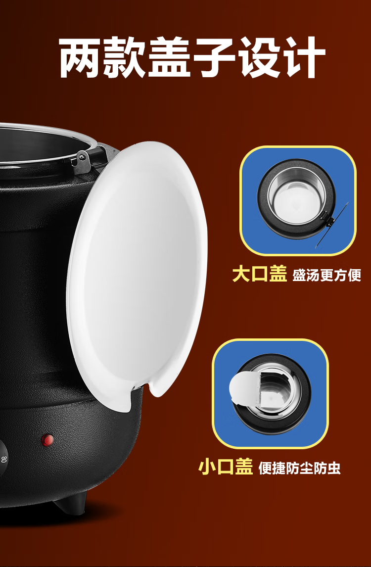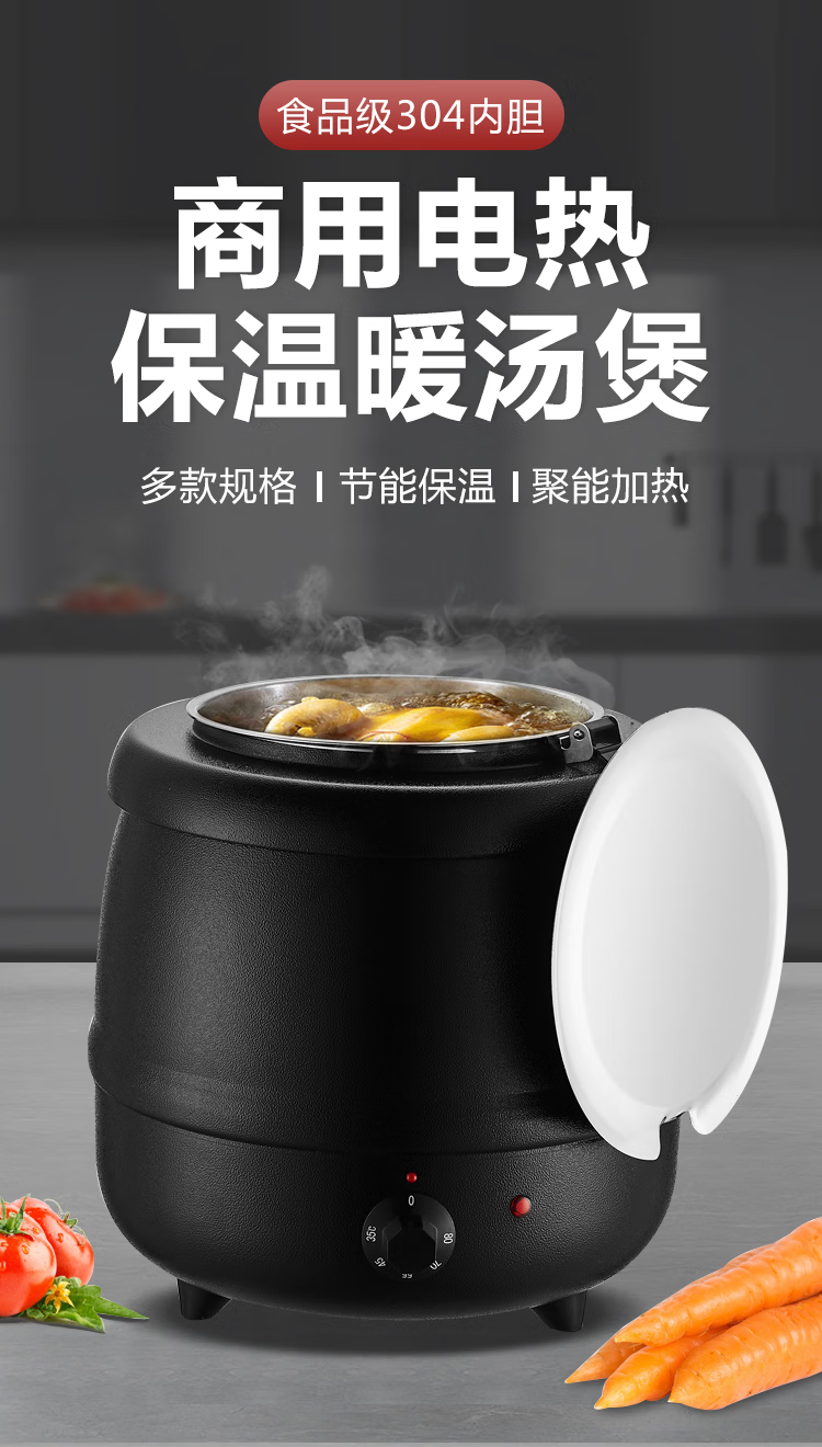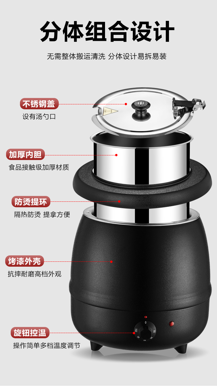 Buffet electronic warm soup cooker commercial 10L13L stainless steel insulation pot porridge bucket hotel soup pot electric heating soup stove 13 liter drum-shaped steel soup cooker/upgraded 304 liner
