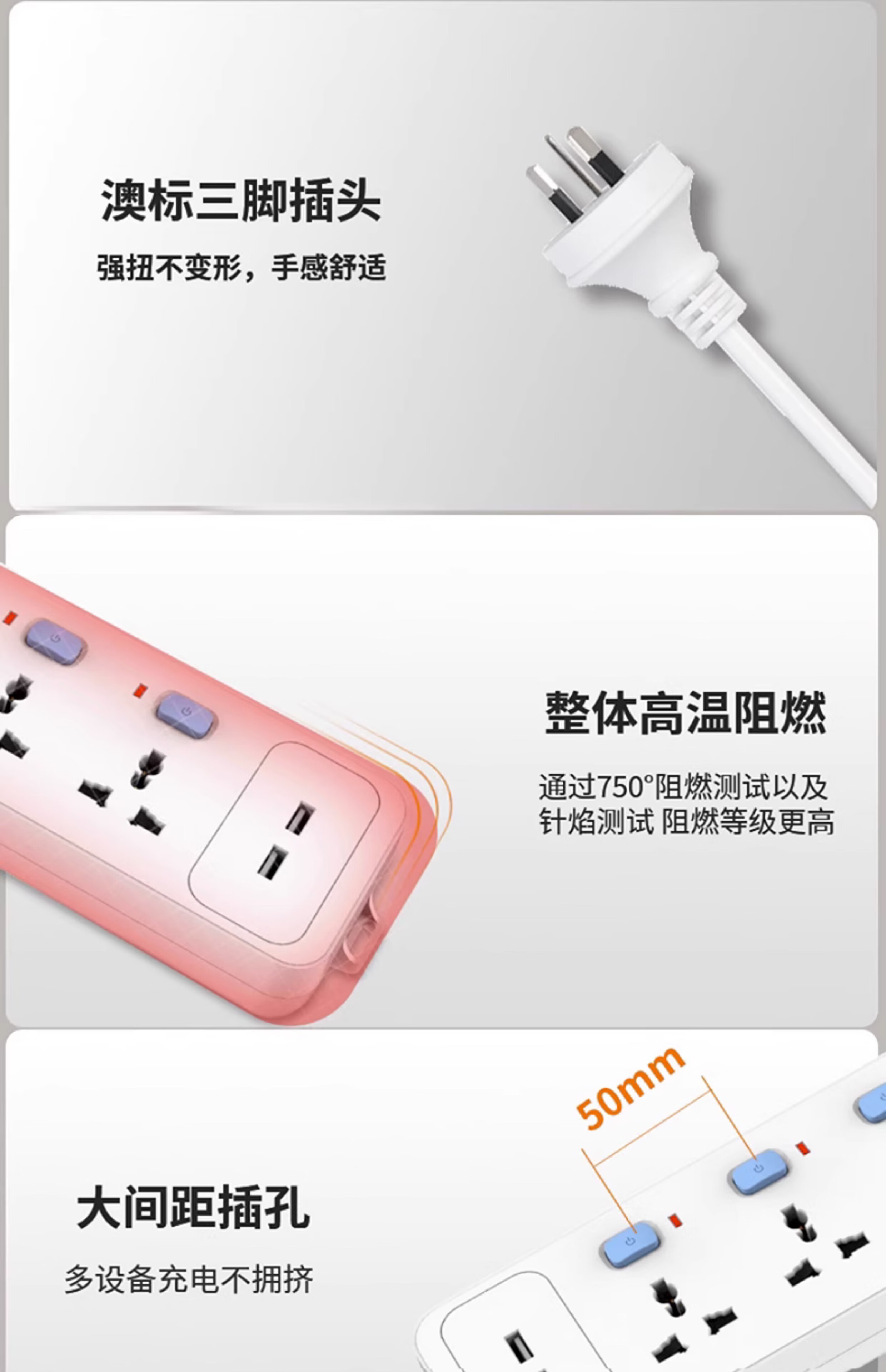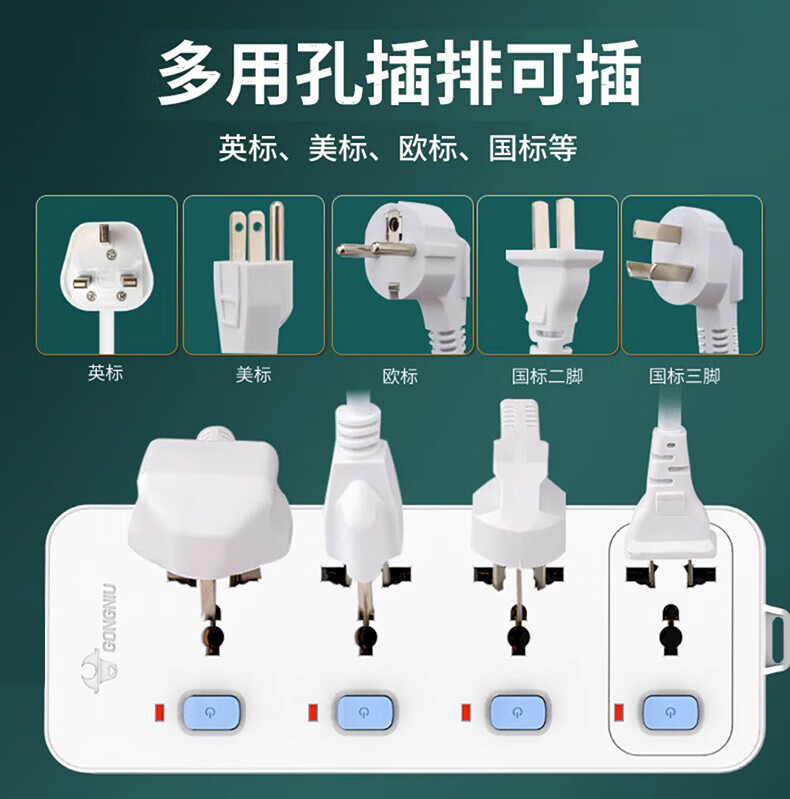 Universal plug-in strip Australian conversion plug Australian standard British standard American standard European standard round hole multi-purpose socket sub-controlled 6-socket line length 1.5 meters ready to ship