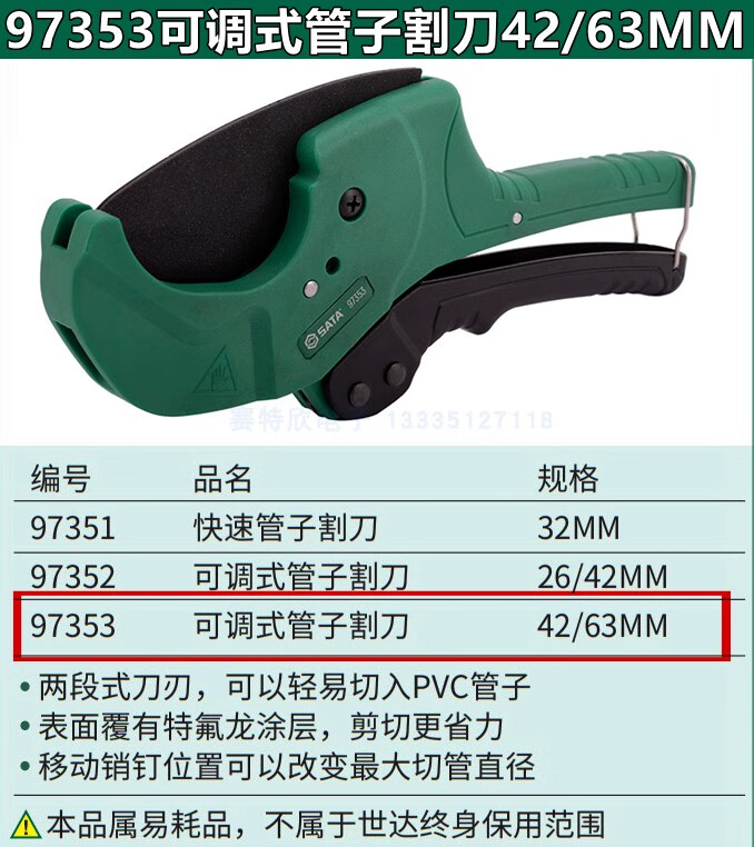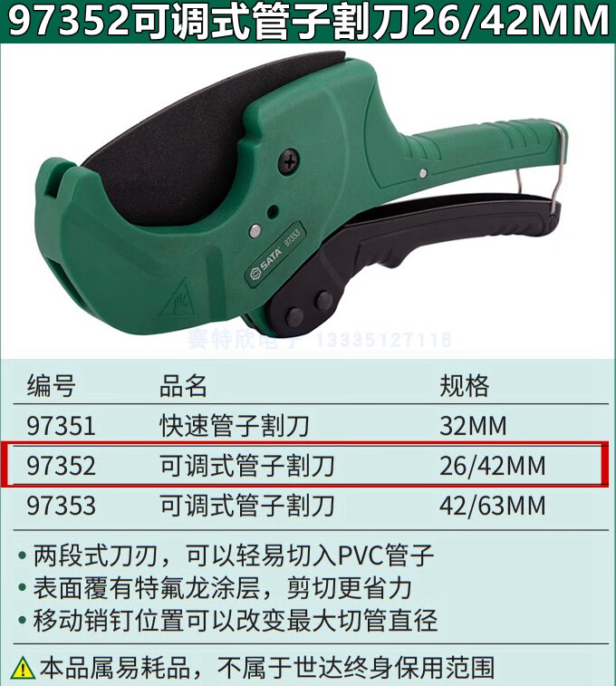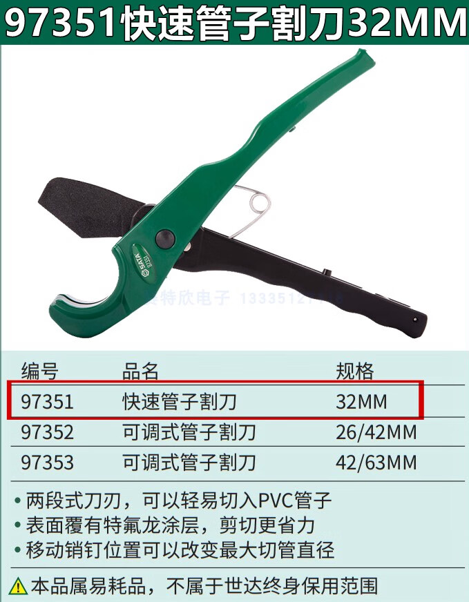 SATA (SATA) SATA 97351 Quick-cut PVC pipe cutter 97352 Adjustable PPR pipe cutter 97353 Water pipe scissors 97304 97351 Quick pipe cutter 32MM