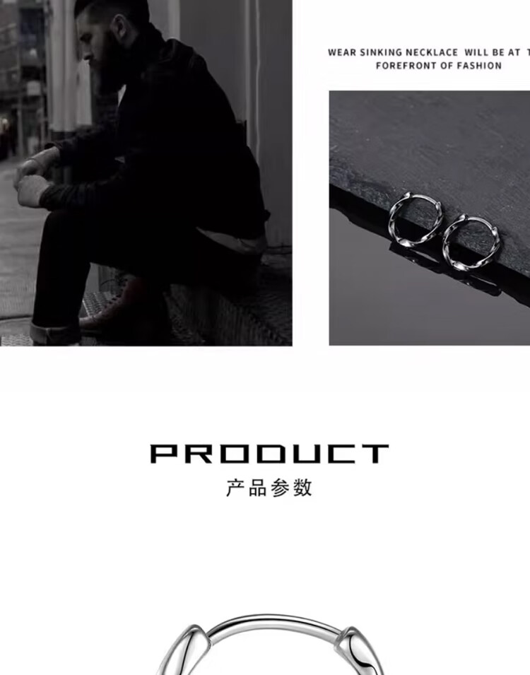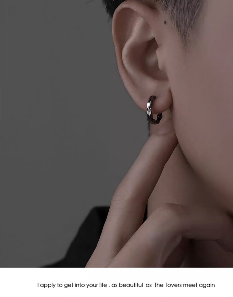 Mansheng 999 Pure Silver Earrings Men's High-end Sensitive Rings 2024 New Trendy Women's Single Black Earrings Men's Gift S999 Pure Silver Black 12mm Single