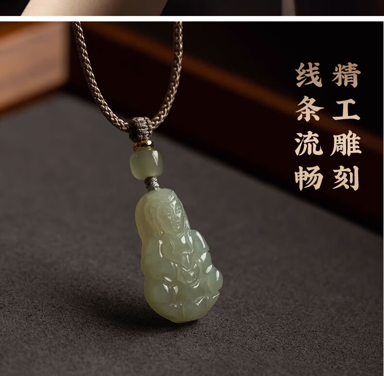 BJYL White Jade Guanyin Pendant Women's Necklace Ancient Jade Pendant Amulet Chinese Style Jade Pendant Jade Pendant Men's Gift Guanyin Pendant Ordinary Gift Box