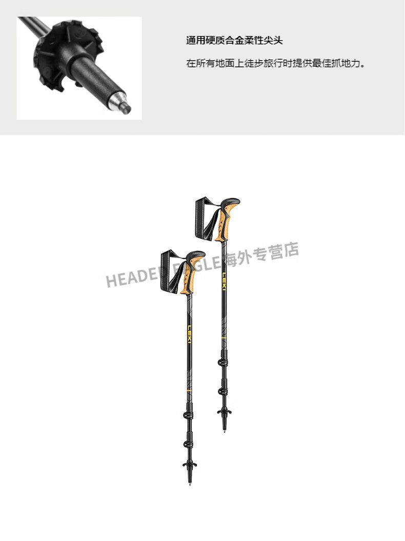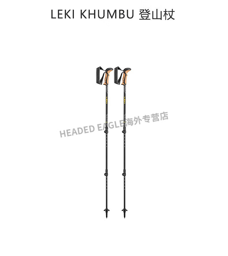 LEKI trekking pole KHUMBU lightweight, wear-resistant, comfortable grip, stable support, adjustable outdoor hiking pole, black and yellow, 100-135 cm