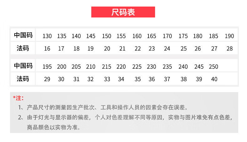 China (cm) 36 - 37 38 - 39 40 - 42 43 - 44 45 - 47