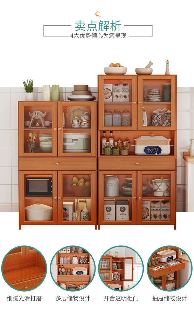 Moridi sideboard kitchen cabinet rental room cupboard multi-functional wine cabinet simple storage cabinet multi-layer tableware rack upgraded bold six-layer model - transparent door