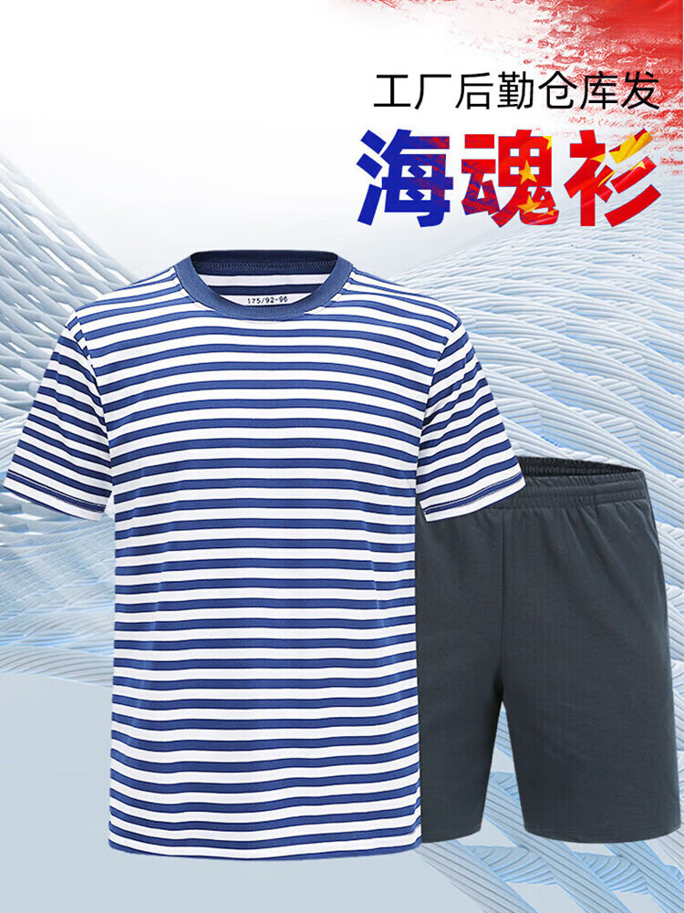 Jihua Bei Xu Haihun shirt men's physical fitness training clothes short-sleeved suit summer quick-drying shorts sportswear striped round neck T-shirt men's Haihun single top 175/92-96