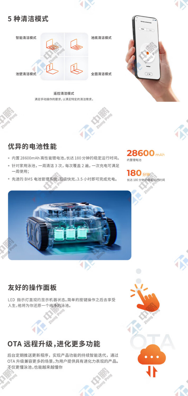 Deep Blue Swimming Pool Sewage Suction Machine Underwater Vacuum Cleaner Fully Automatic Wireless Pool Cleaning Equipment Wall-Climbing Cleaning Machine Special Accessories for Underwater Robots (please consult customer service, single shot will not be sent)