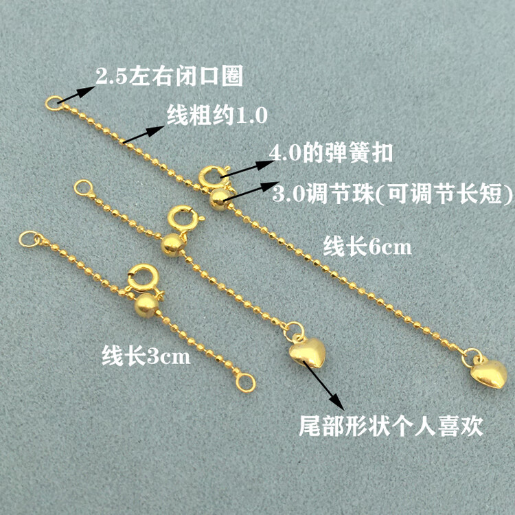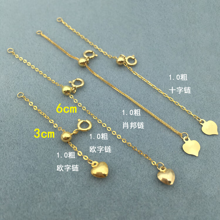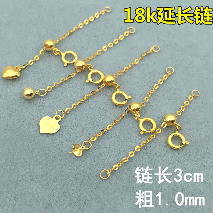 Fat Donglai's same style 18K gold extension chain 18K gold extended tail chain Chopard pearl adjustable chain DIY necklace No. 9 line length 3cm chain + tail three-dimensional love 1.0 thick European chain K yellow one