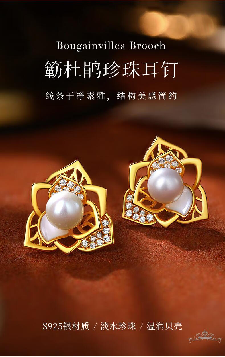 Haikai Earrings Women's Pearl Earrings Luxury Jewelry Design Valentine's Day Birthday Gift for Wife or Girlfriend Bougainvillea Natural Pearl Earrings (1 Pair)