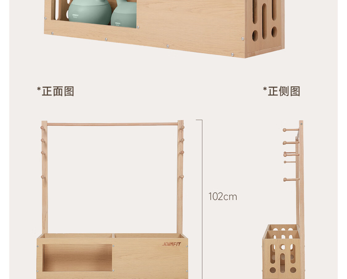 Jieying Fei Pilates yoga equipment storage rack gym personal training gadget hanger storage rack does not include yoga equipment three-hole storage rack - white oak color