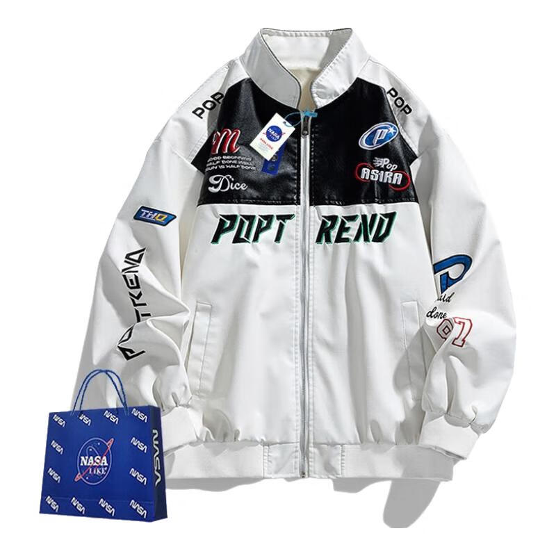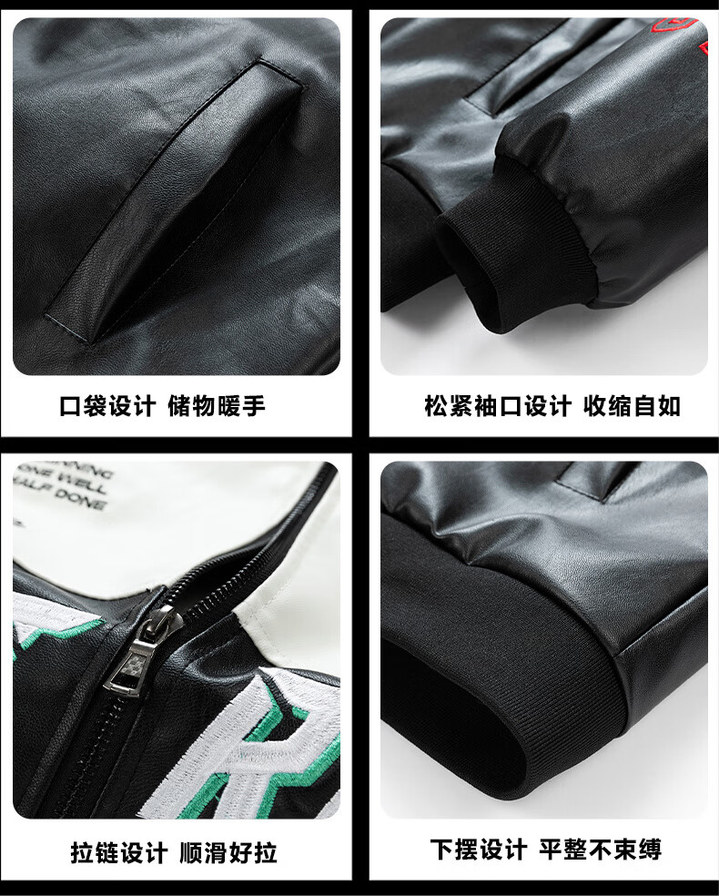 NASALIKE official fashion brand American retro motorcycle leather jacket men's autumn and winter baseball uniform pilot jacket high street men's jacket black 2XL (recommended 145-165Jin Jin equals 0.5 kg)