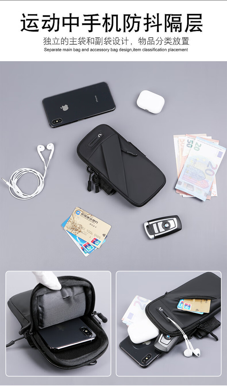Shanyouyuan running mobile phone arm bag mobile phone bag sports fitness arm cover outdoor equipment storage wrist bag wrist arm multi-function black - single function model for use within 7 inches