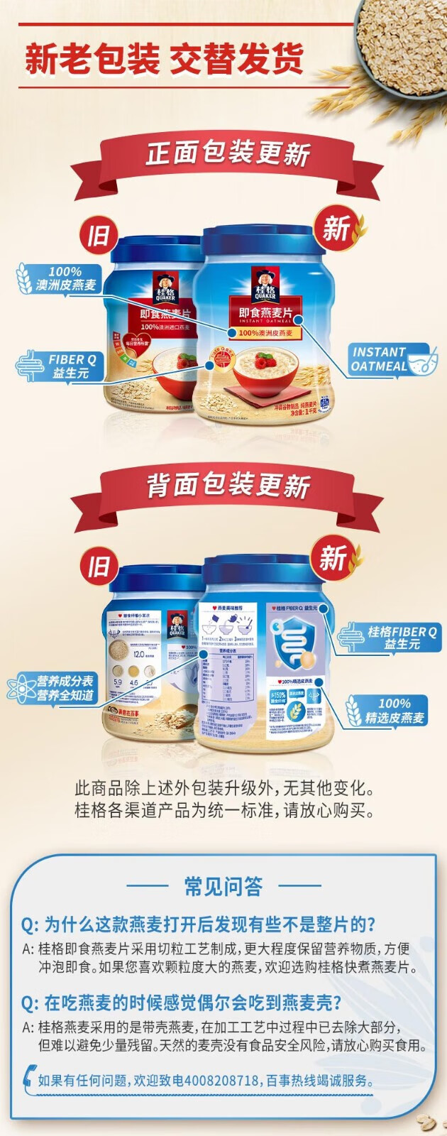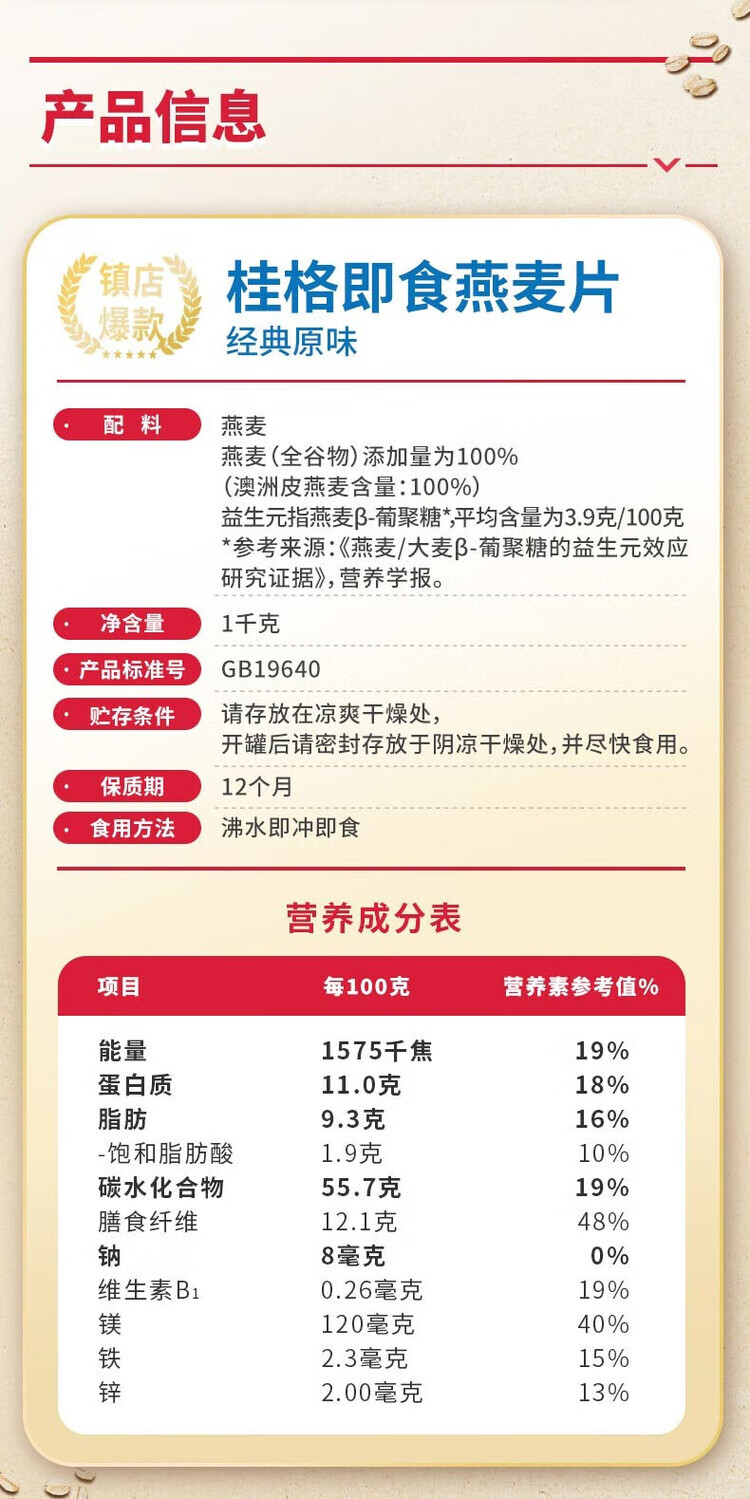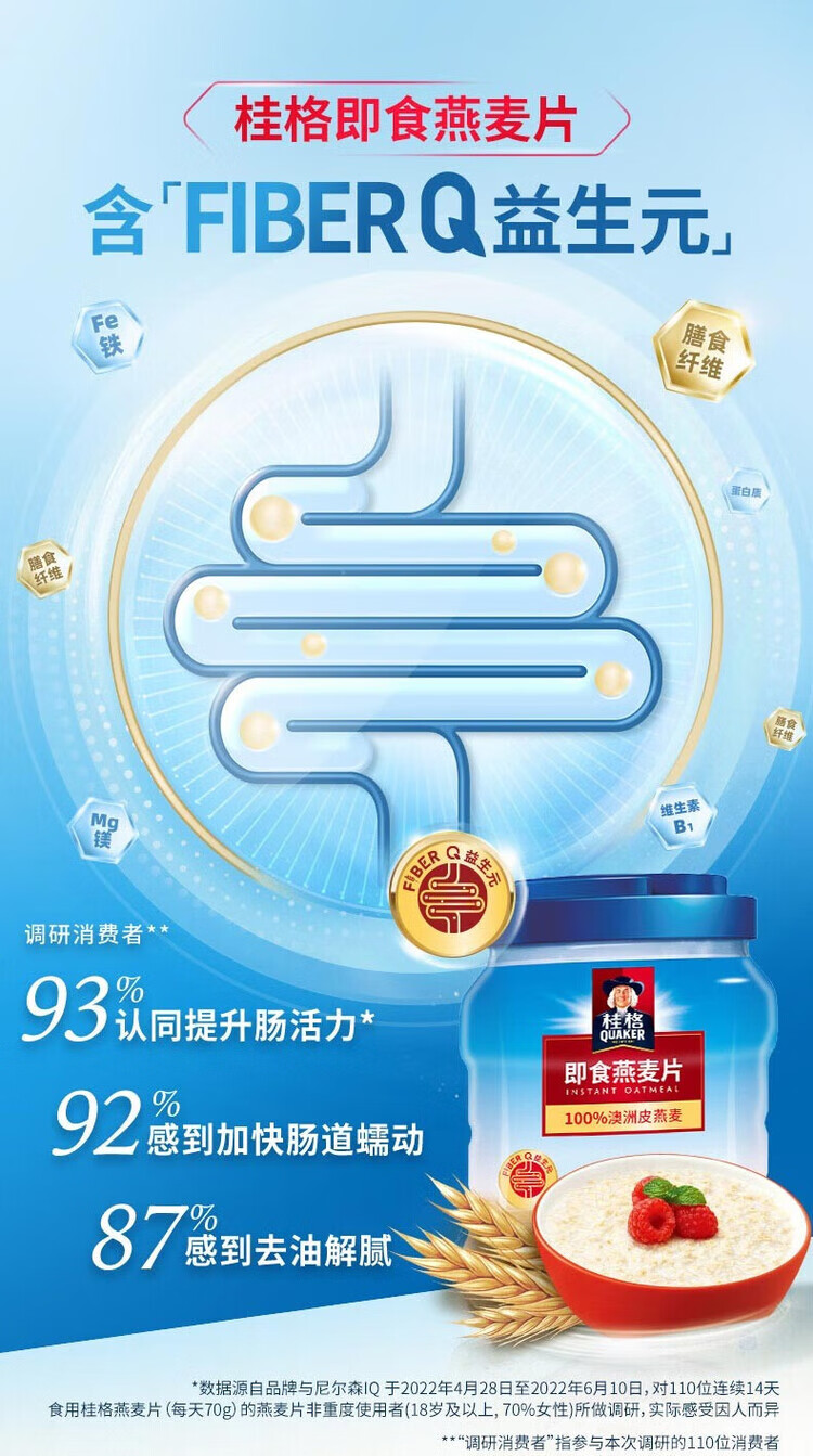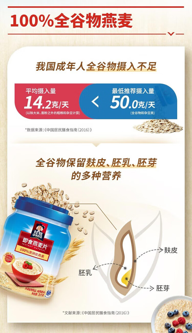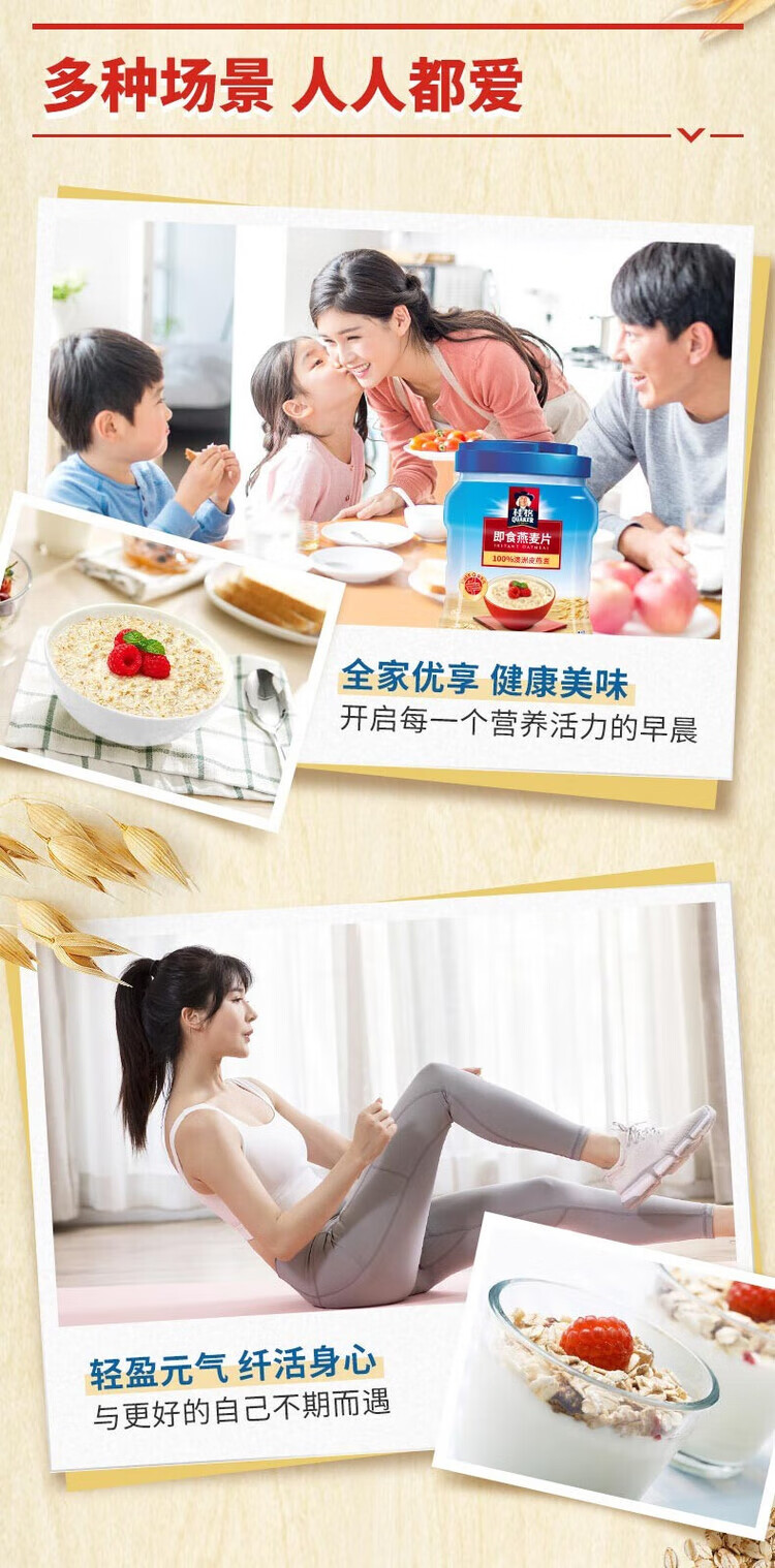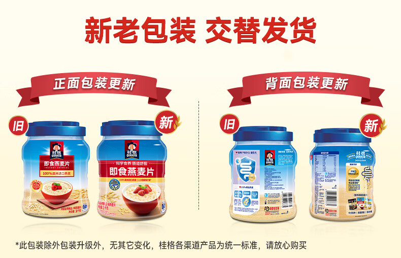 Quaker Quaker Nutritious Breakfast Oatmeal Convenient Instant Lazy Oatmeal 1000g*2 cans Ready-to-eat oatmeal 1000g can + 1000g bag