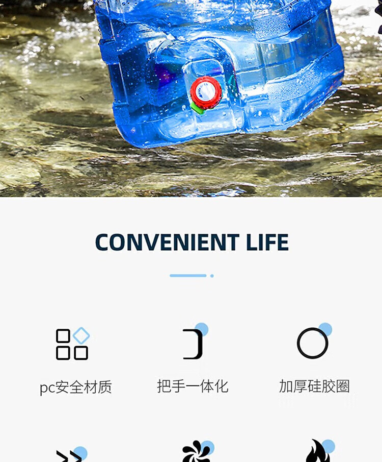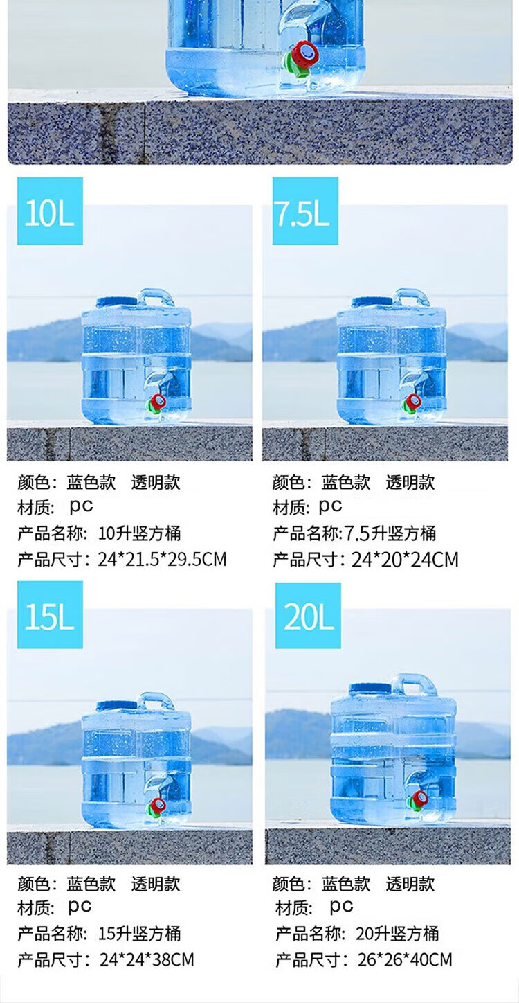 Kangzhiban pure water bottled water drinking water large barrel mineral water barrel portable plastic large-diameter outdoor water storage barrel with faucet 20 liter pc outdoor barrel with faucet + water pipe
