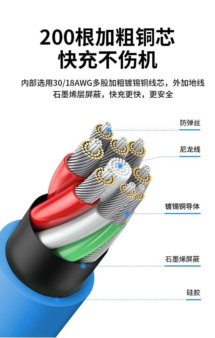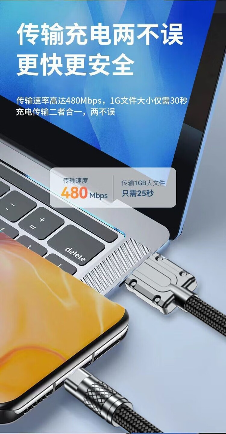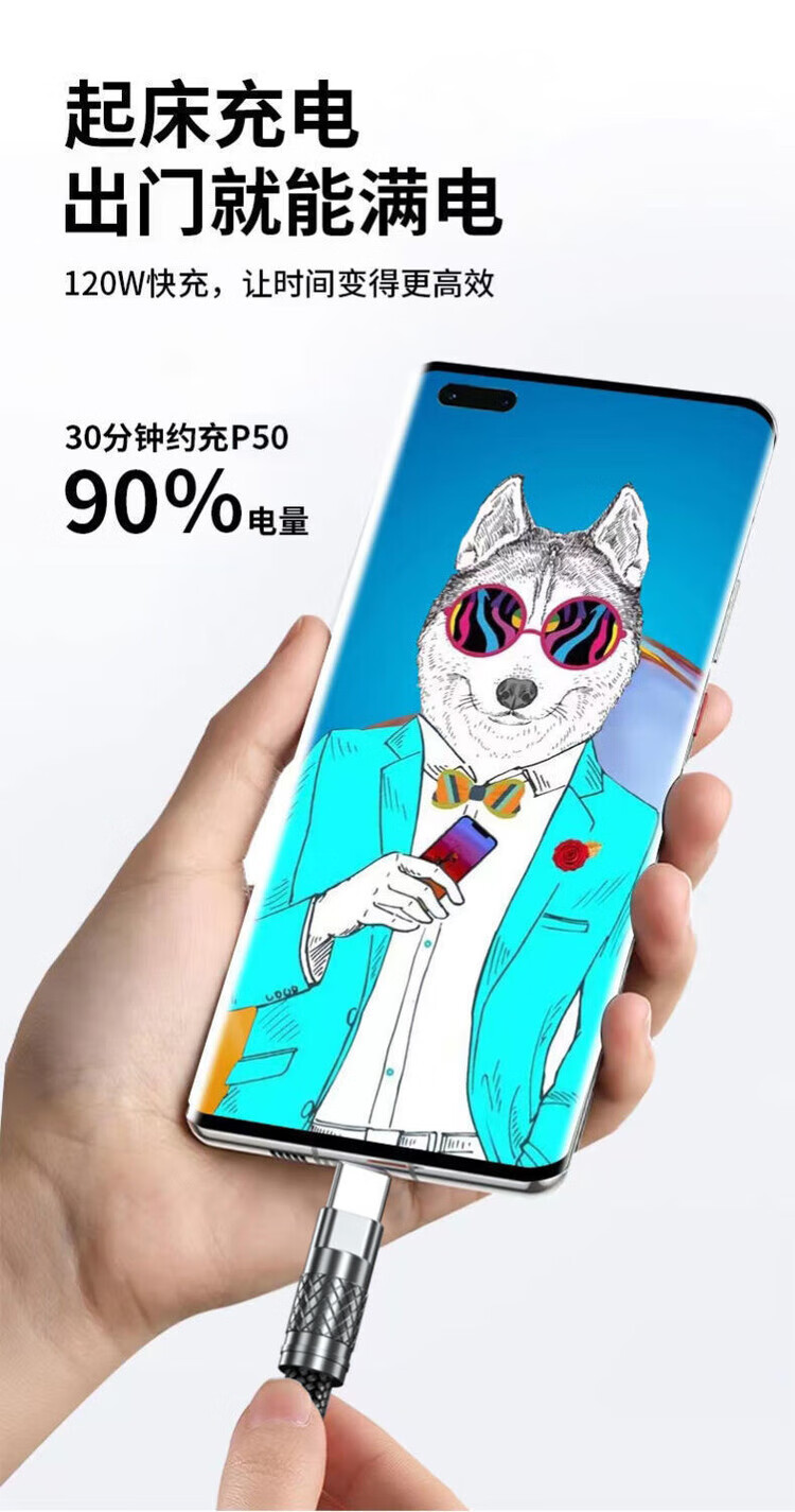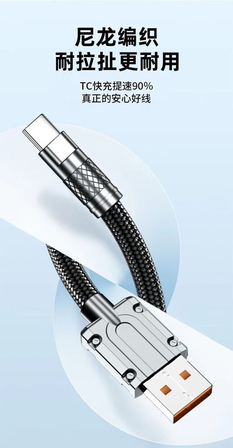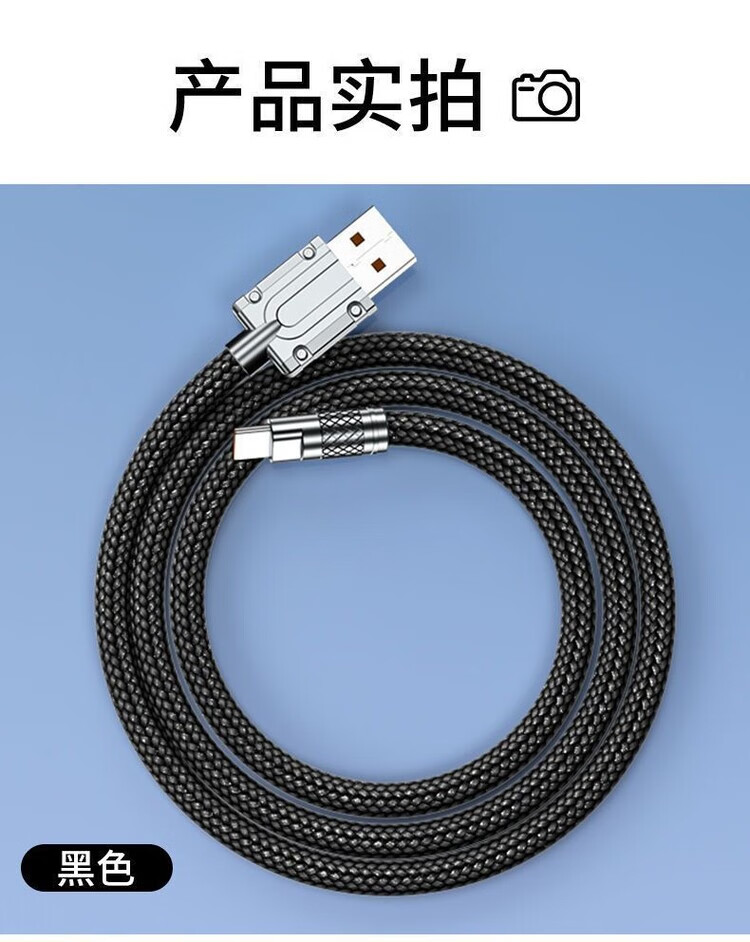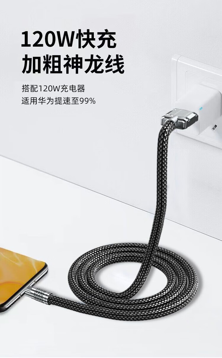 Kofi Show Braided Thick 120W Super Fast Charging Data Cable Suitable for Huawei VIVO Honor Xiaomi OPPO Mobile Phone Charging Cable 1.5 Meter Black Cable Thick Aluminum Alloy Fast Charging