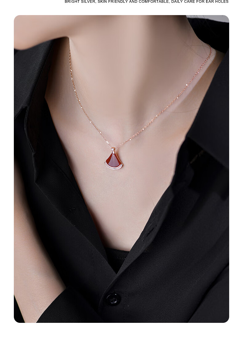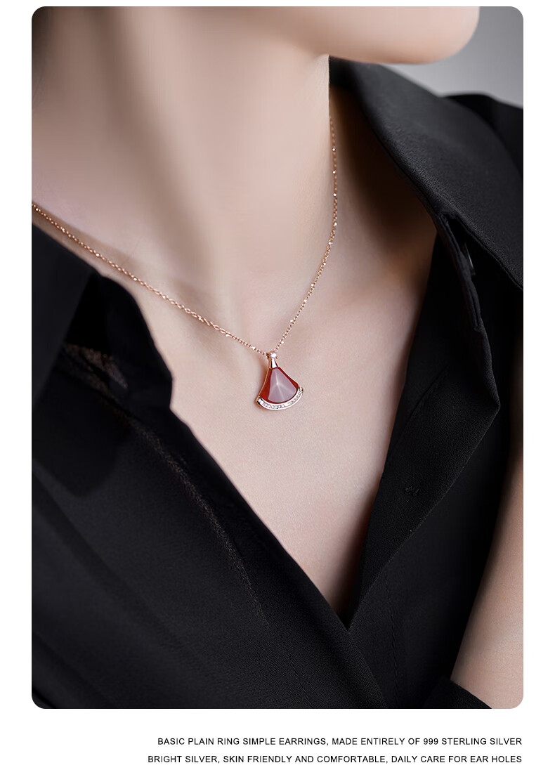 Yijin 925 sterling silver mini skirt necklace women's fashion versatile light luxury white mother-of-pearl pendant necklace niche high-end clavicle chain exquisite gift box mini skirt necklace