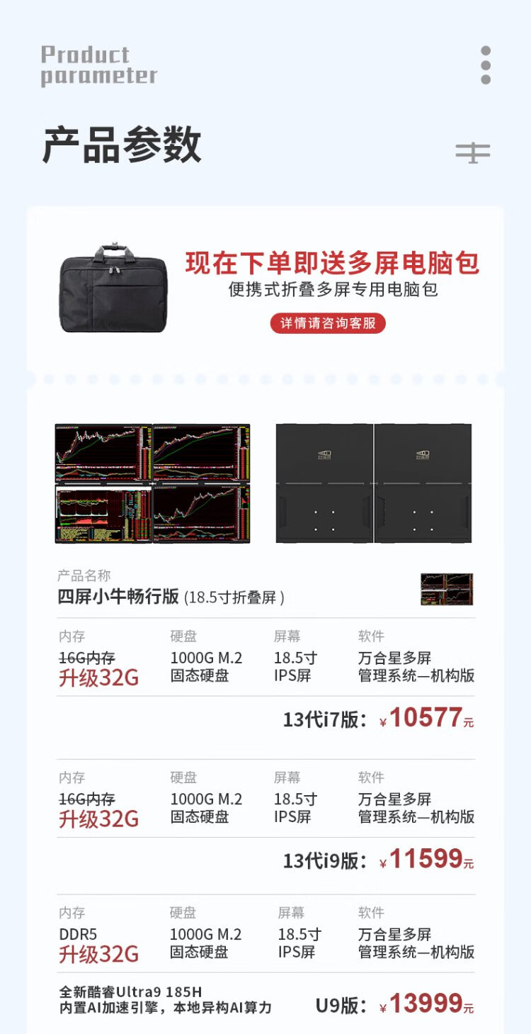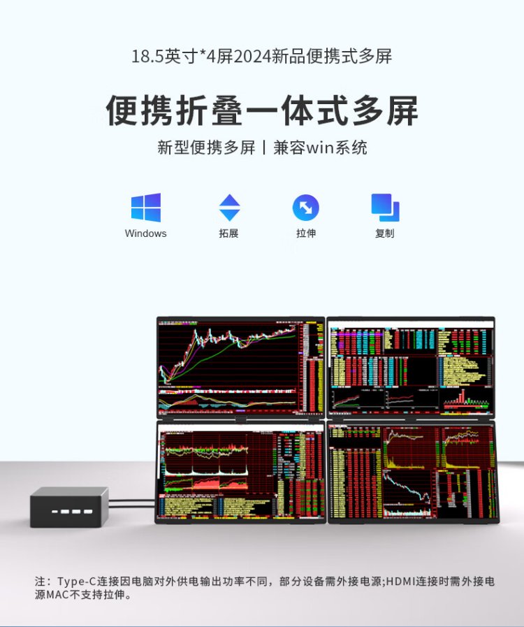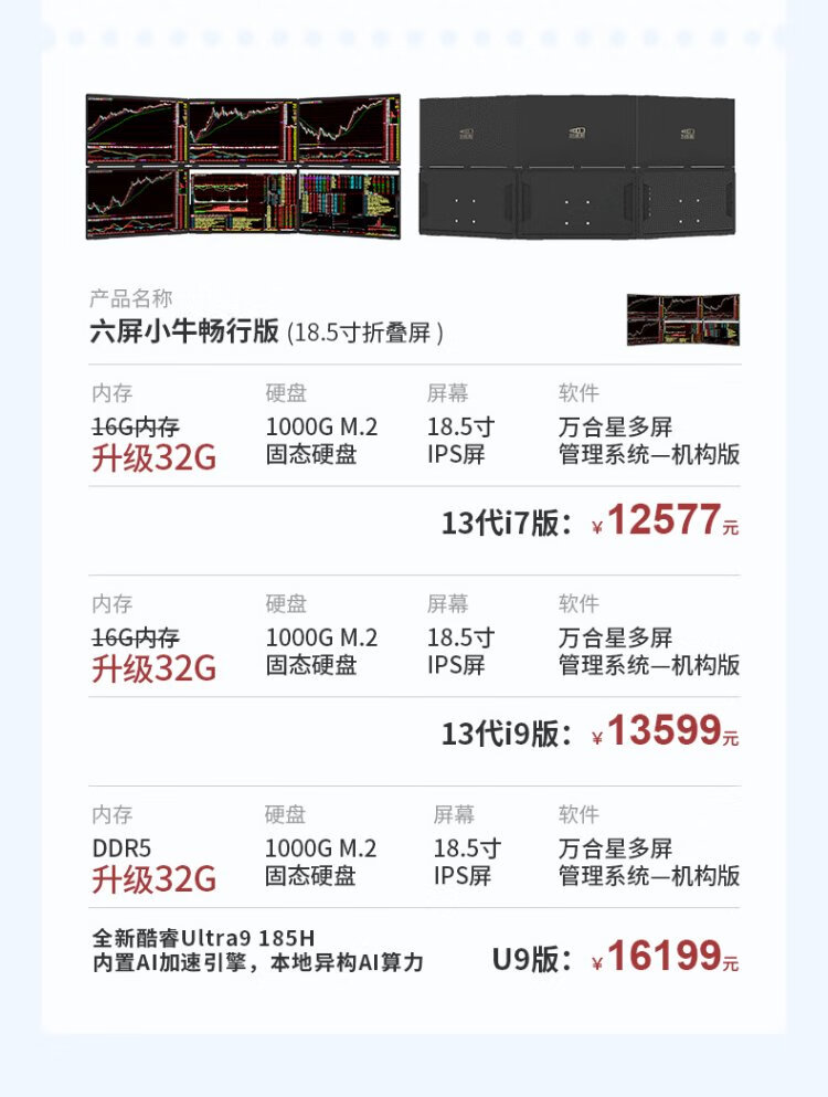 Wanhexing Portable 18.5-inch Folding One Machine Four-Screen Six-Screen Computer Professional Multi-screen Stock Futures Foreign Exchange Financial Securities Trading Viewing Display Equipment Special Multi-screen Computer Four-Screen Changxing Edition 15th Generation U9 32G 1000G with 18.5-inch Folding Screen