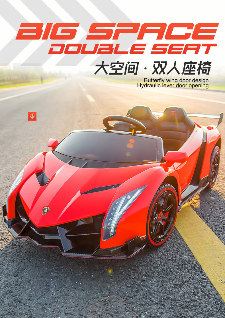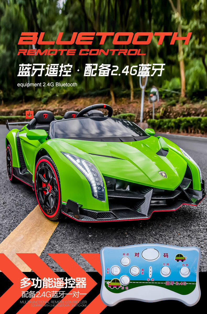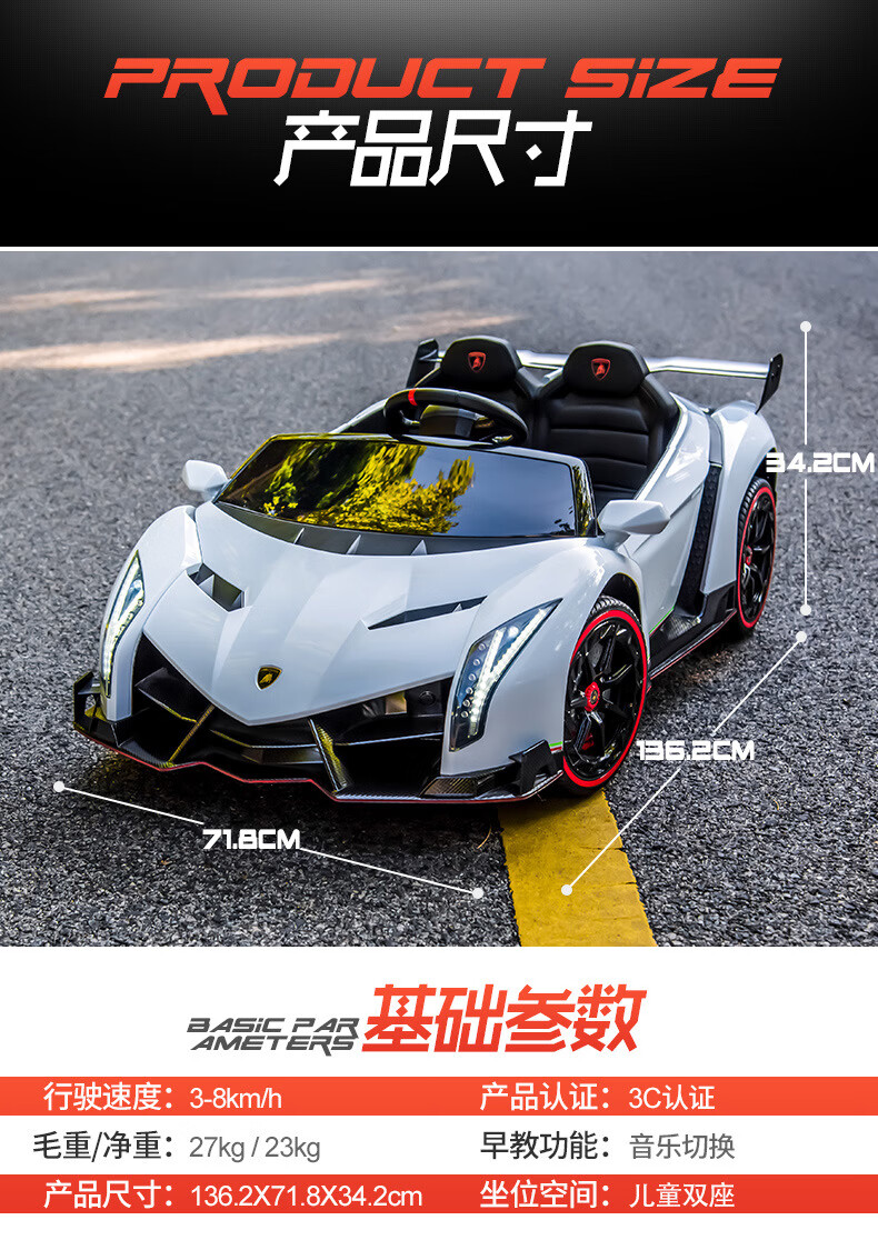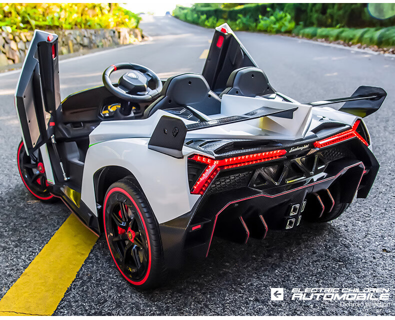 Agulun's new trendy Lambo children's car can be driven by four-wheeled two-seater children's sports car electric remote control toy car polished white MP3 four-wheel drive